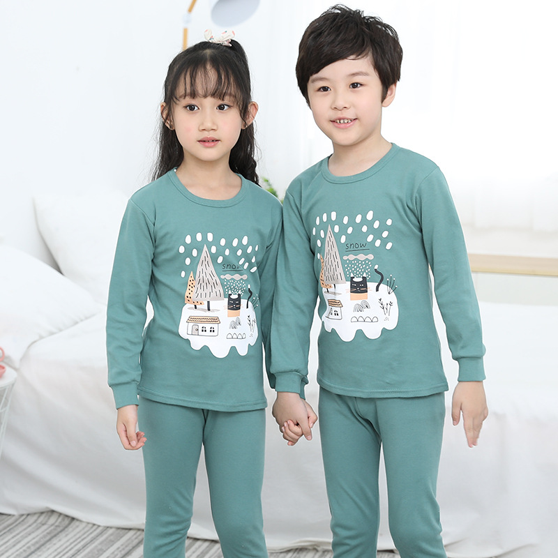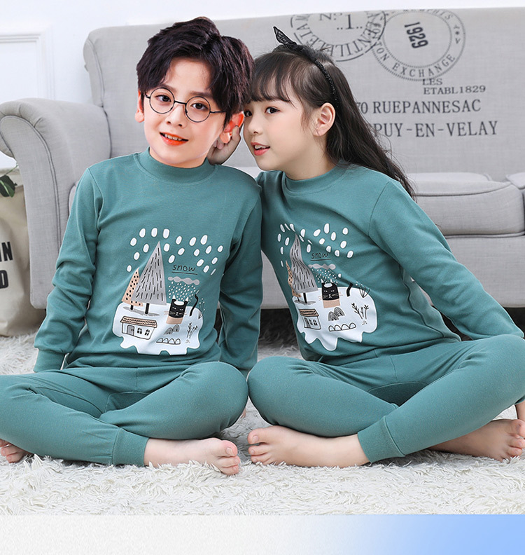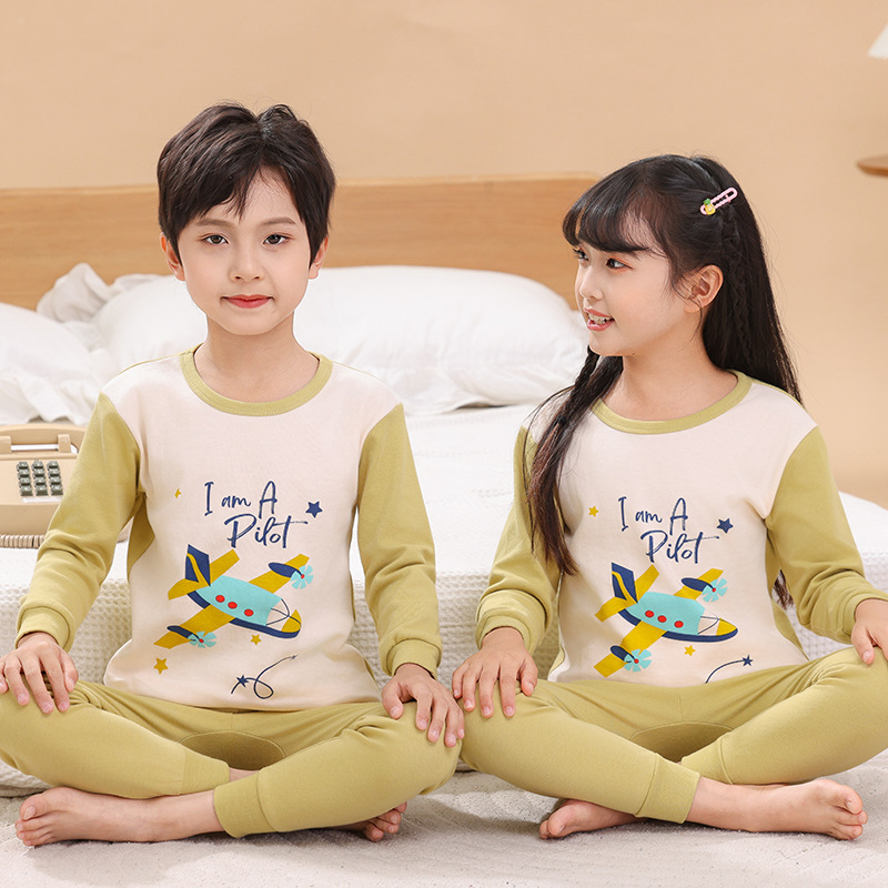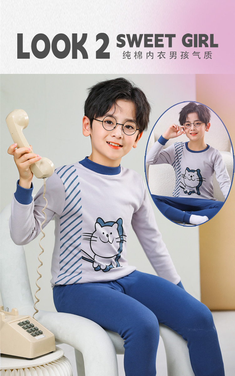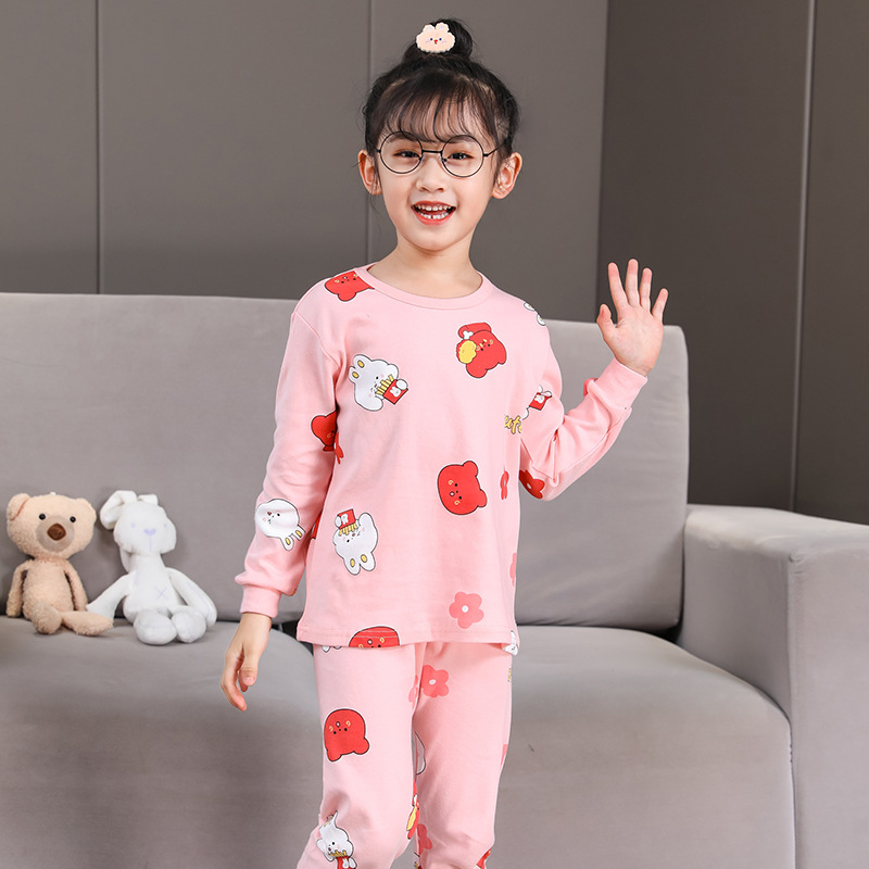 가을과 겨울 새로운 아동면 가을 옷 가을 바지 소년 소녀 속옷 세트 2024 어린이 면화 파자마 도매스토어 가기