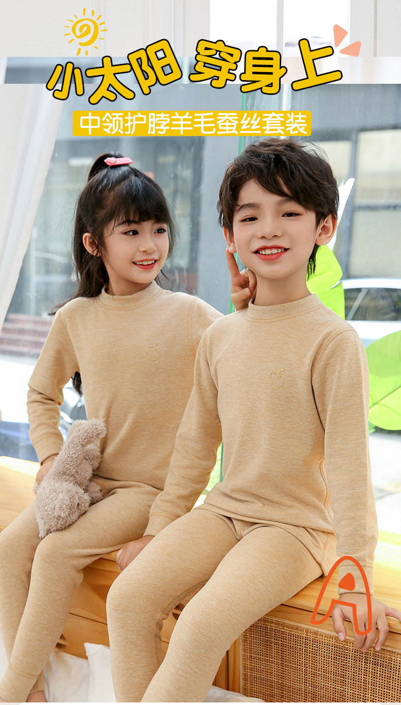 아이의 최고 칼라 열 속옷 세트 양모 실크 중간 칼라 가을 옷 소년과 소녀