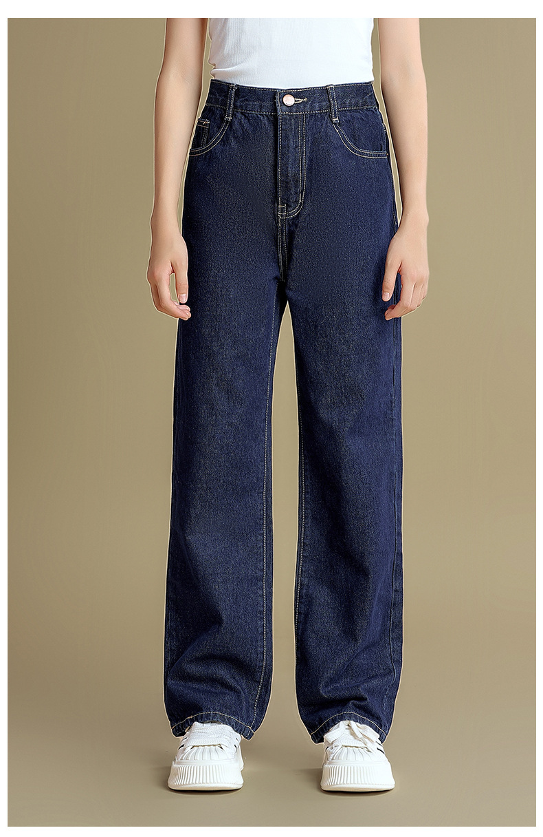 여아용 다크 데님 팬츠 2024 가을 신상 겨울 의류 아동용 한국 스타일 스트레이트 팬츠 큰 아이들 캐주얼 긴바지 트렌디
