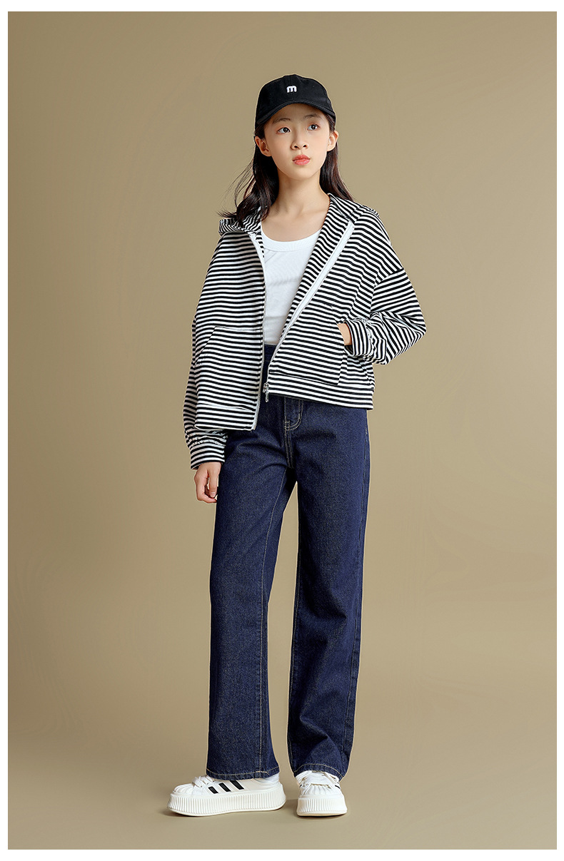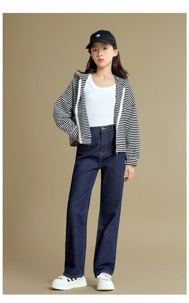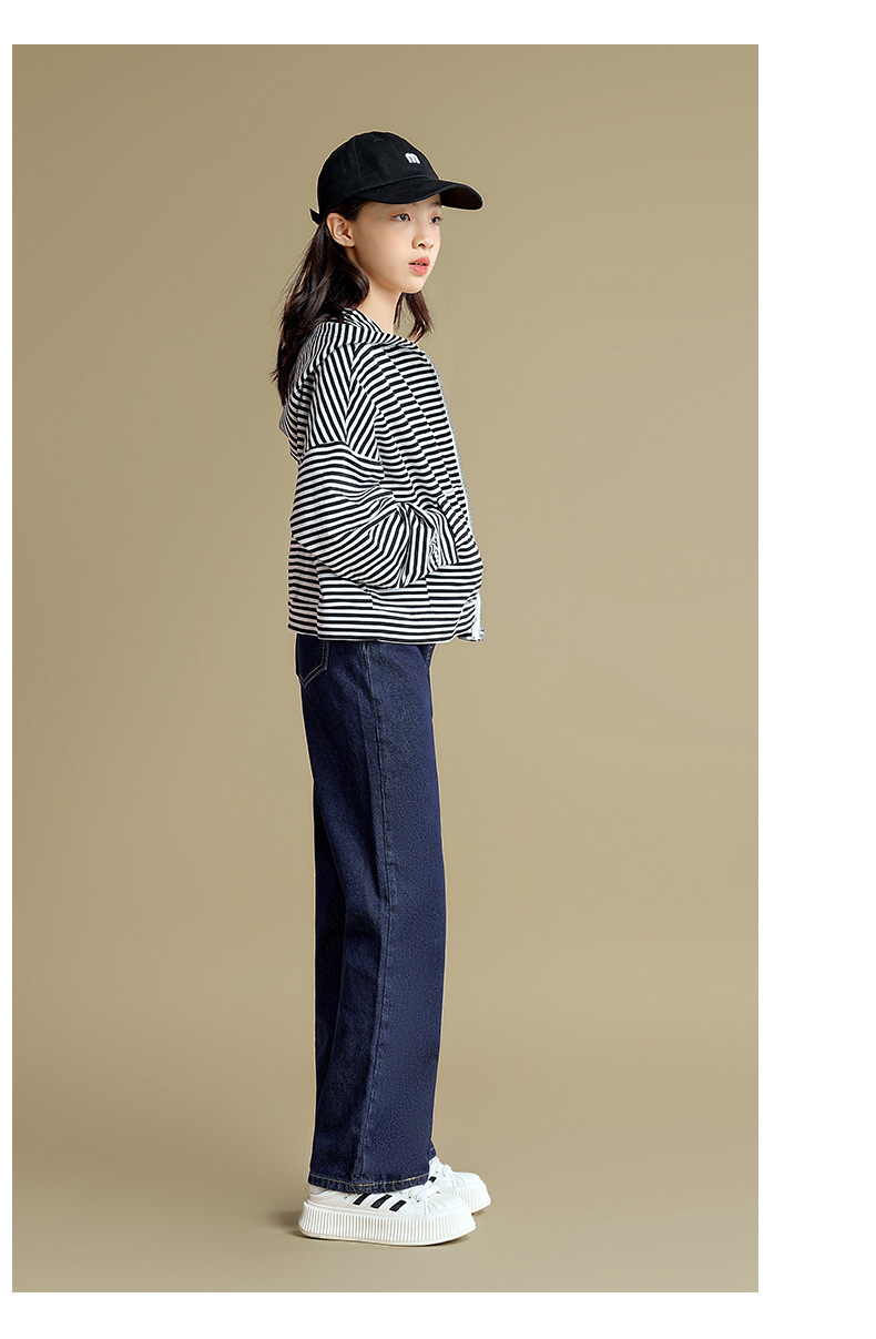 여아용 다크 데님 팬츠 2024 가을 신상 겨울 의류 아동용 한국 스타일 스트레이트 팬츠 큰 아이들 캐주얼 긴바지 트렌디스토어 가기