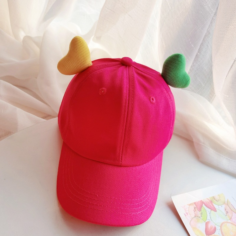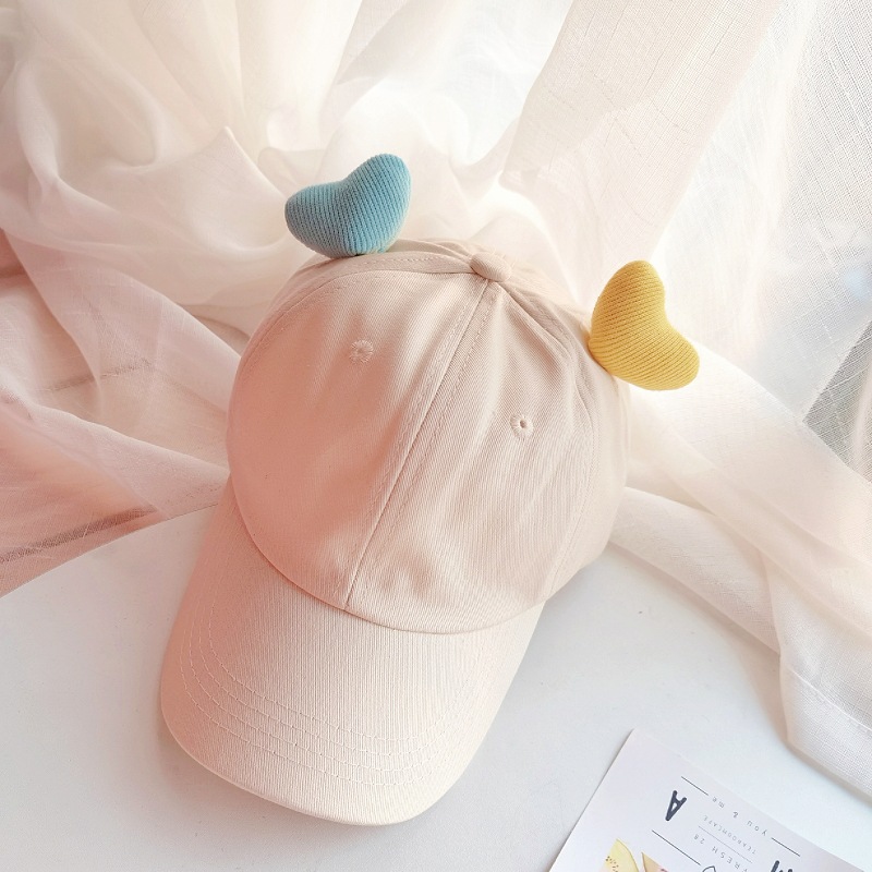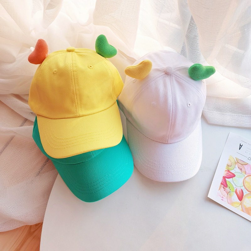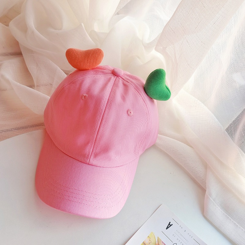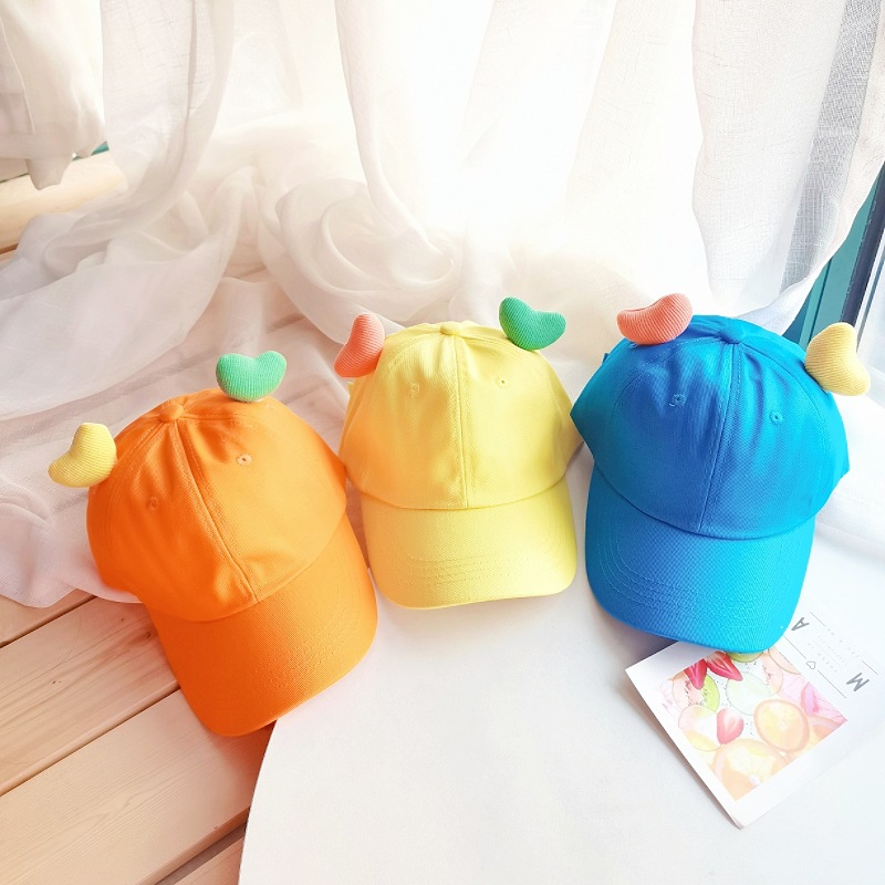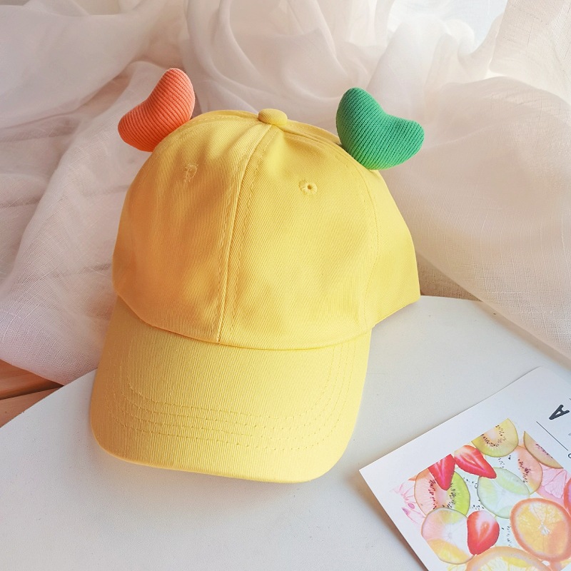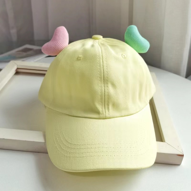 Yintu 인쇄 유치원 초등학생 그룹 구매 작은 노란 모자 복숭아 심장 모자 귀여운 소년 소녀 봄과 가을 모자