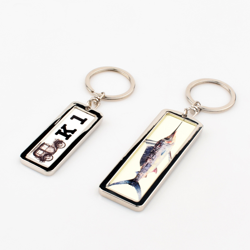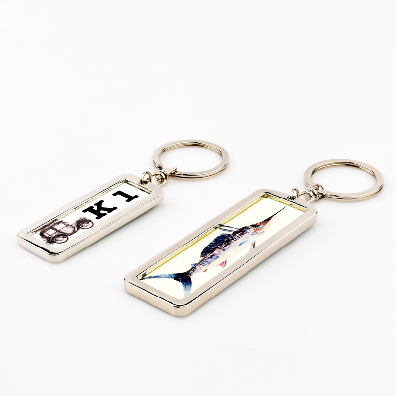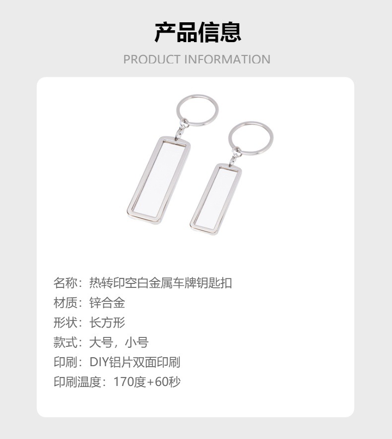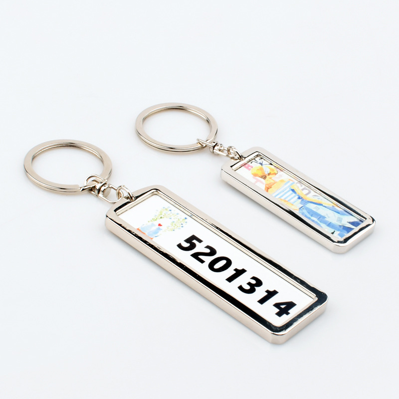 국경 간 핫 세일 열 전달 빈 금속 번호판 키 체인 승화 아연 합금 키 체인 양면 인쇄