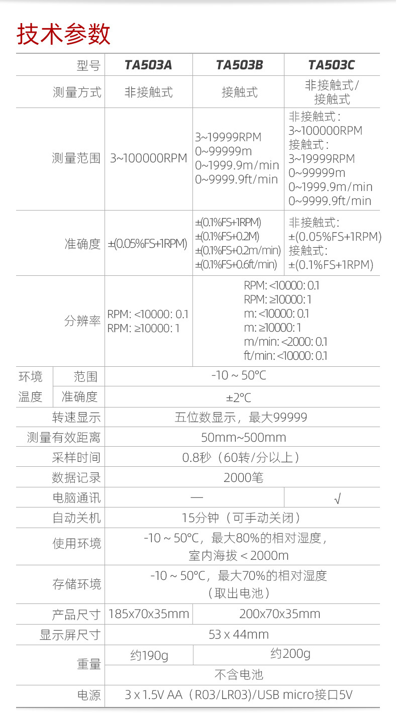 Teans 디지털 디스플레이 레이저 회전 속도계 TA503A 접촉 모터 라인 속도 측정기 회전 속도계 회전 속도계스토어 가기