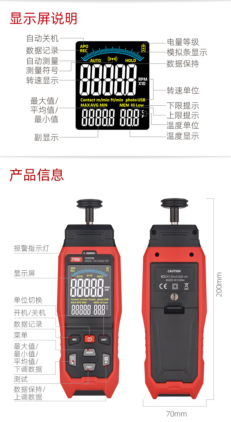 Teans 디지털 디스플레이 레이저 회전 속도계 TA503A 접촉 모터 라인 속도 측정기 회전 속도계 회전 속도계
