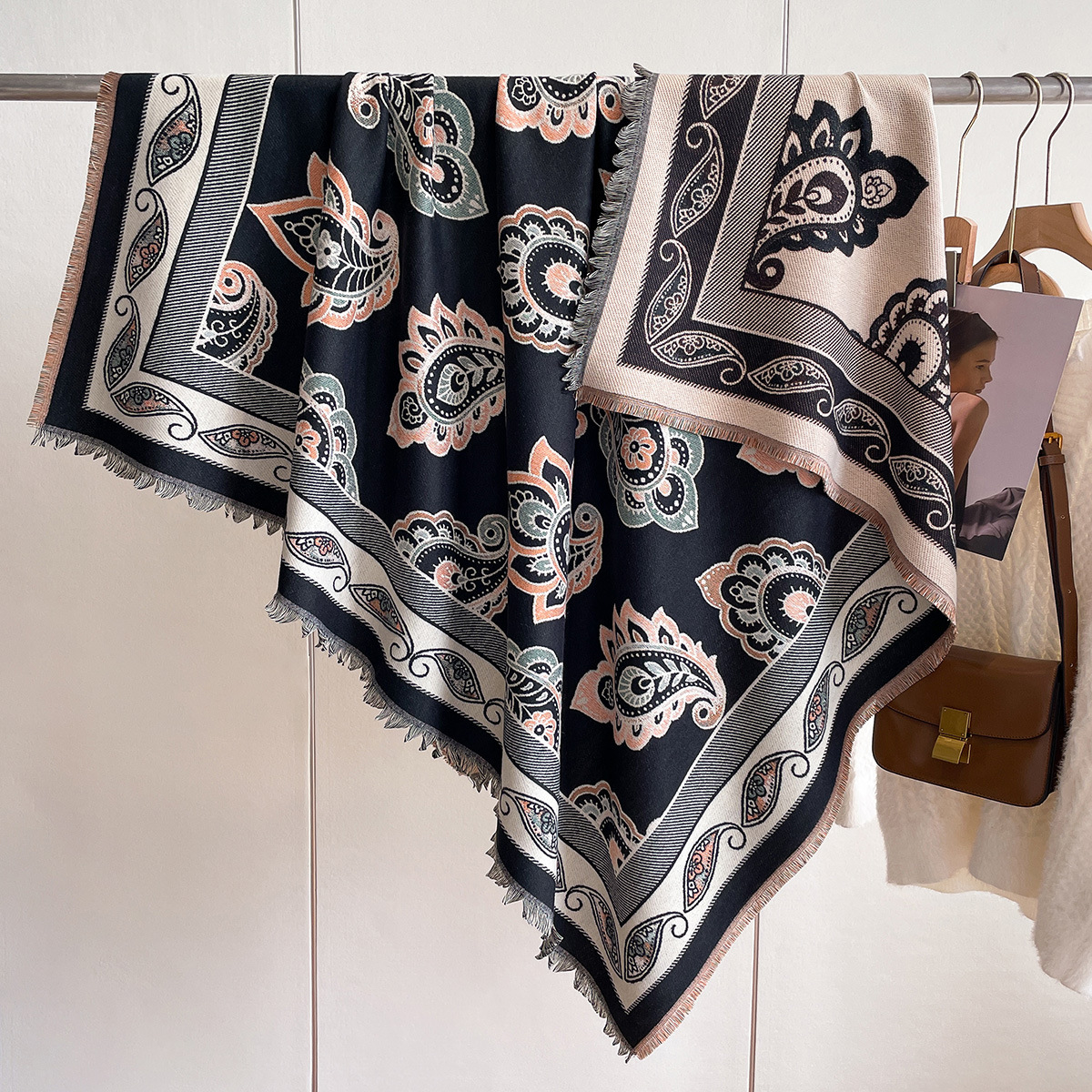 2023 양면 캐시미어 스카프 따뜻한 목 여성 가을과 겨울 새로운 캐슈 유행 우아한 대형 스퀘어 숄