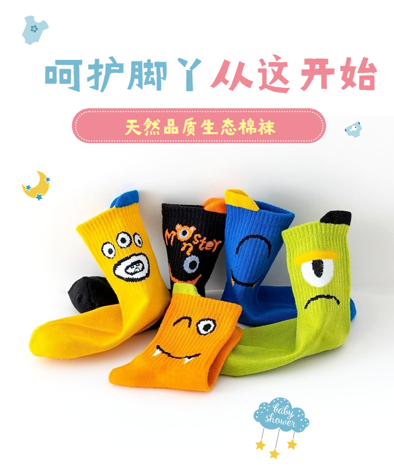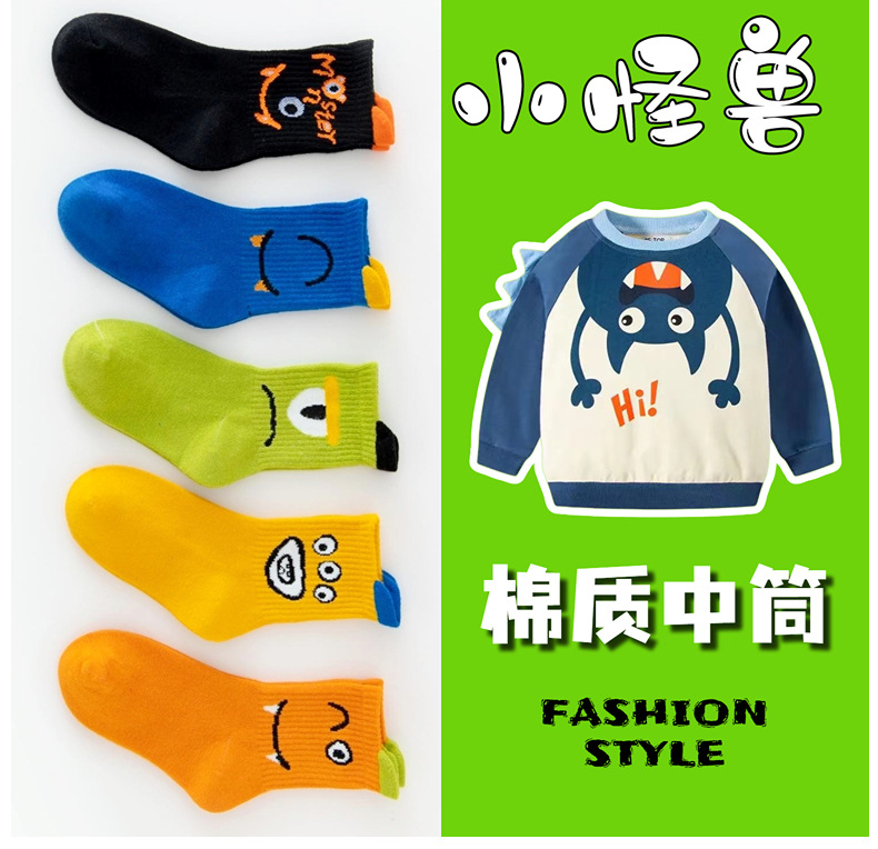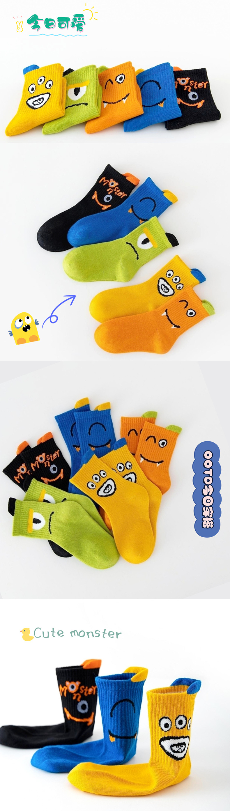 어린이 양말 도매 신상 봄 가을 겨울 면 양말 중간 길이 양말 귀여운 작은 괴물 만화 남녀 어린이 양말스토어 가기
