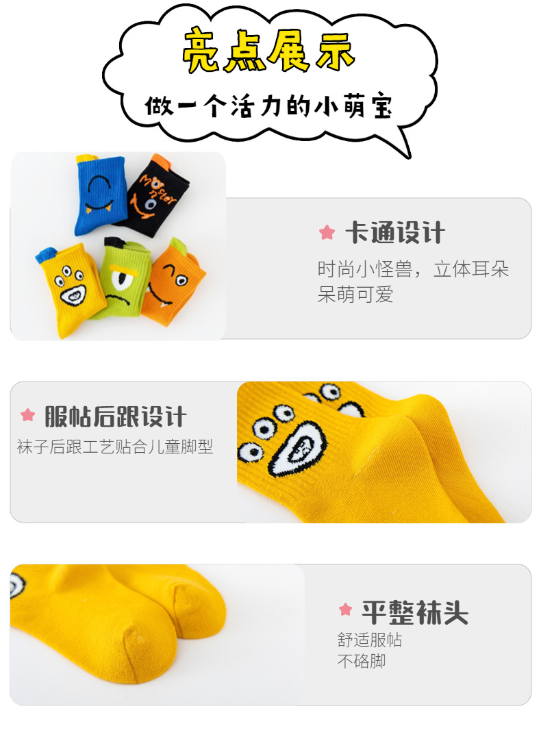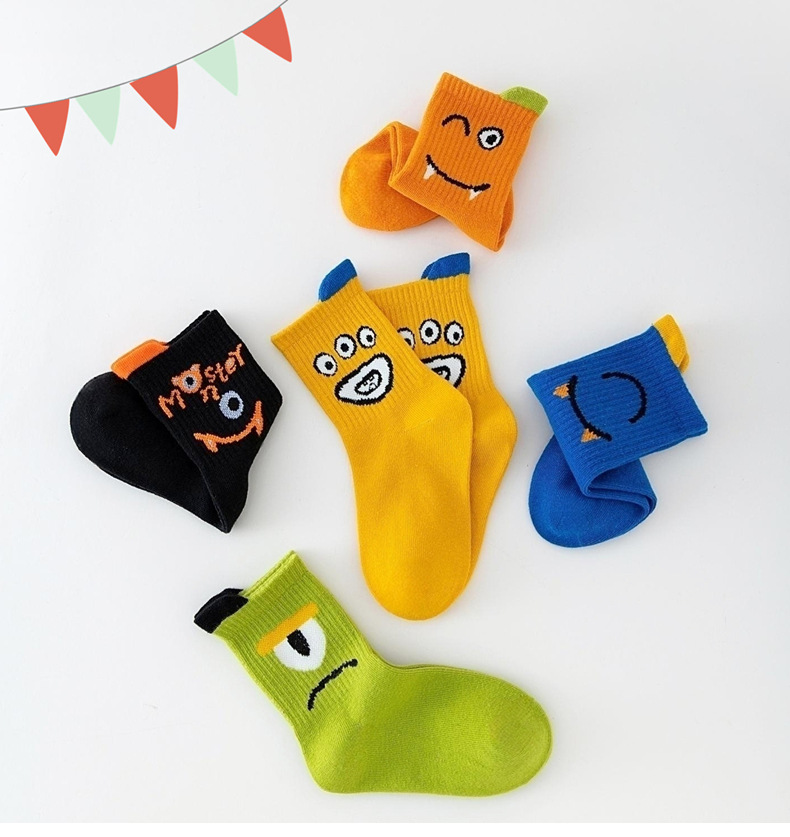 어린이 양말 도매 신상 봄 가을 겨울 면 양말 중간 길이 양말 귀여운 작은 괴물 만화 남녀 어린이 양말