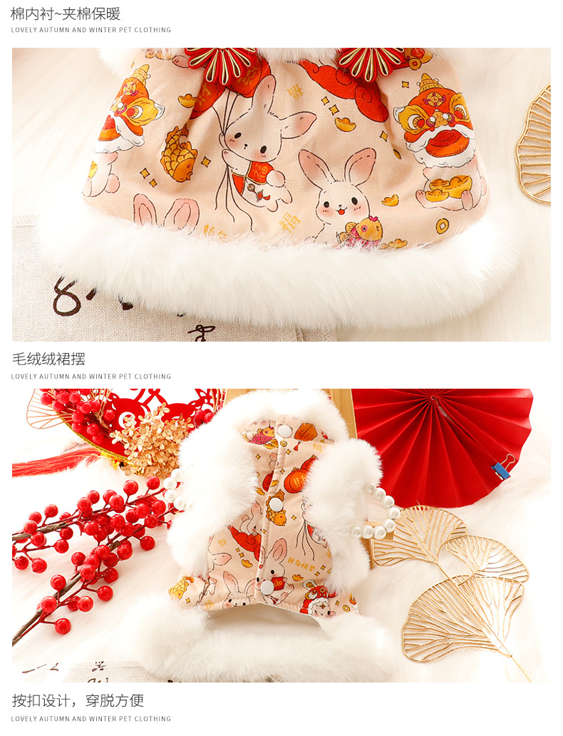 개 옷 가을과 겨울 옷 고양이 공주 면 옷 당나라 옷 마오 마오 새해 축제 작은 개 테디 애완 동물 4353