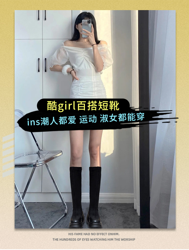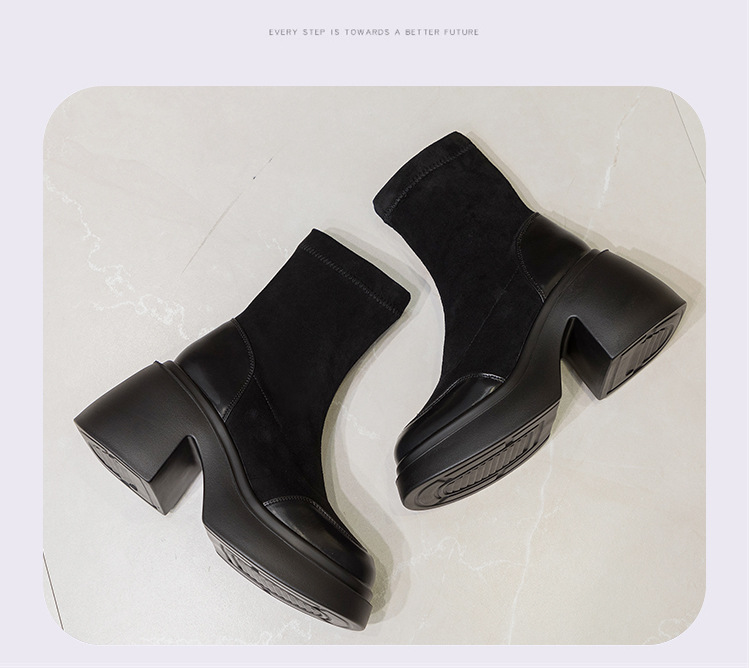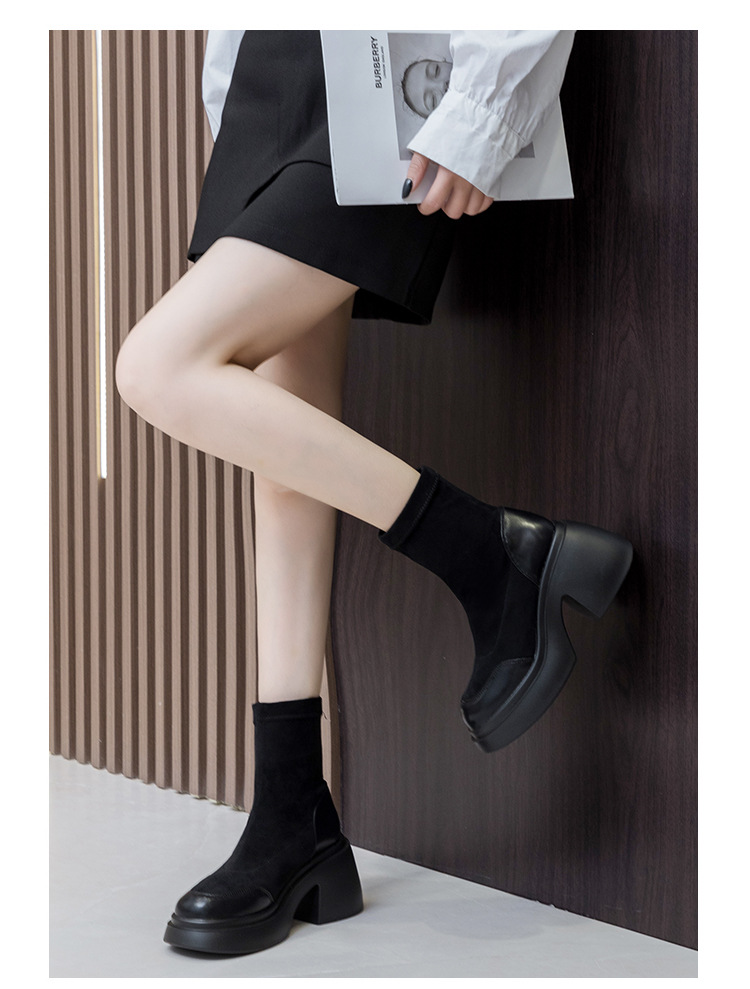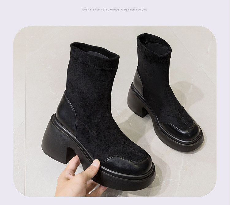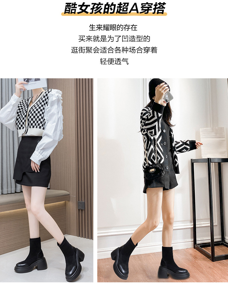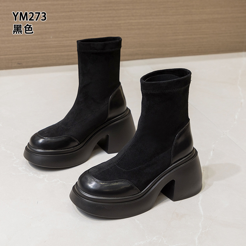 마틴 부츠 여성 가을과 겨울 2023 새로운 두꺼운 밑창 두꺼운 굽 탄성 부츠 유럽 역 캐주얼 다용도 기모 얇은 짧은 부츠