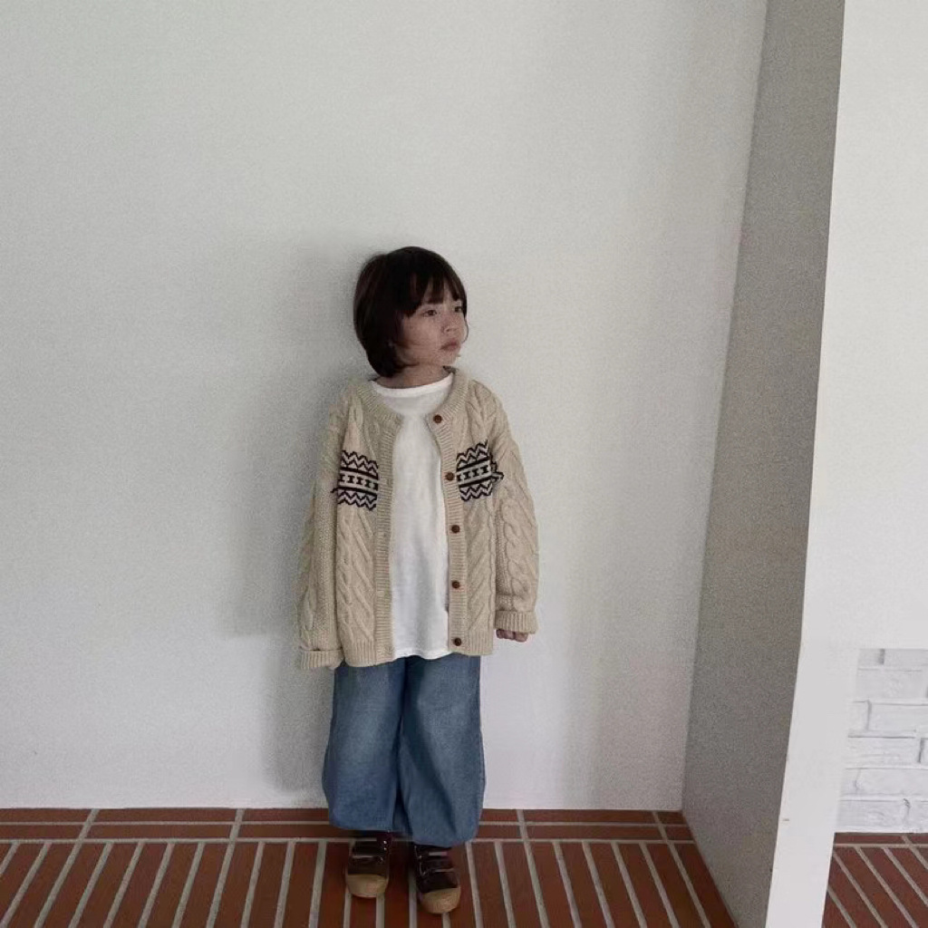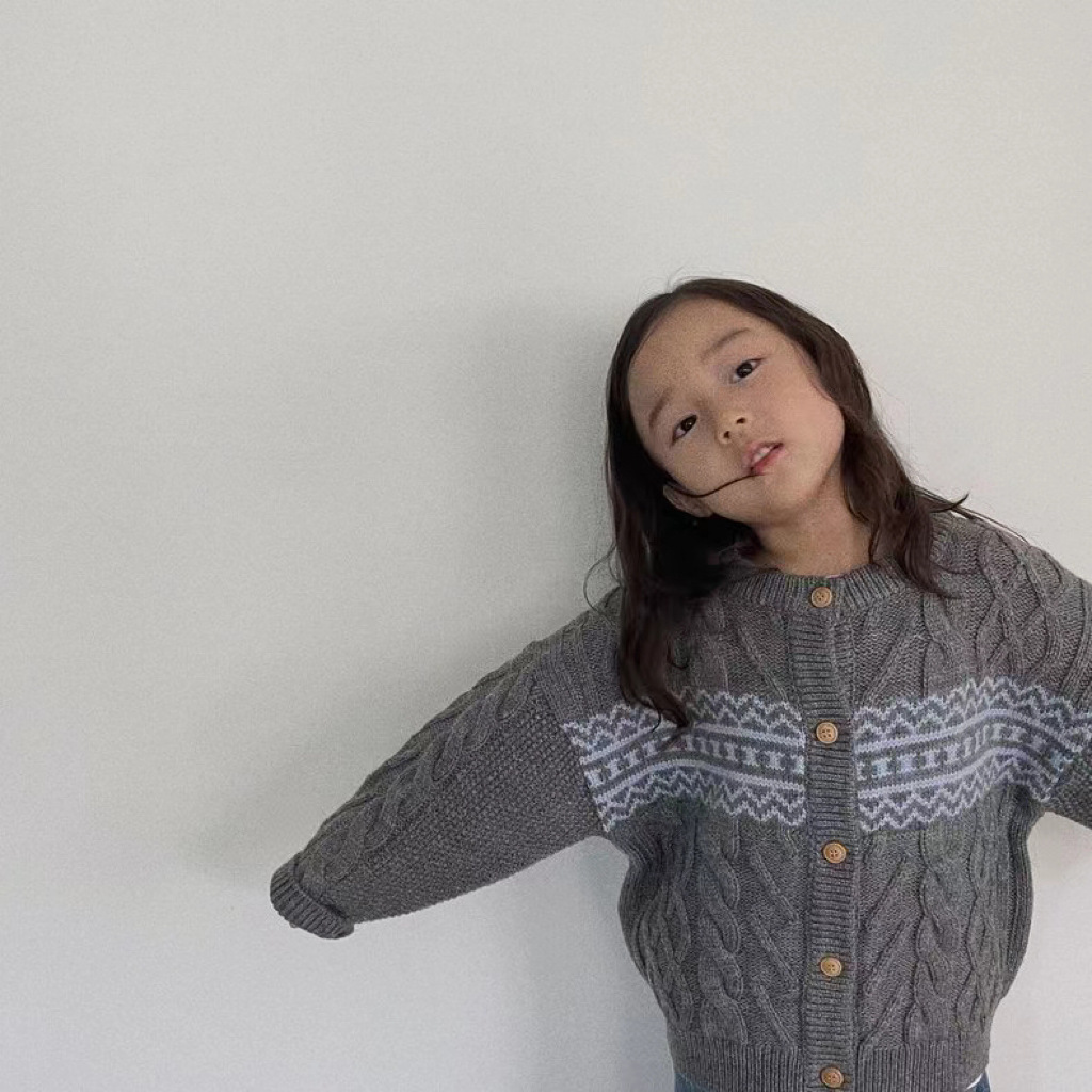 한국 스타일 어린이 니트 재킷 가디건 올 매치 캐주얼 탑 베이비 스웨터 봄과 가을 패션 아동 의류스토어 가기