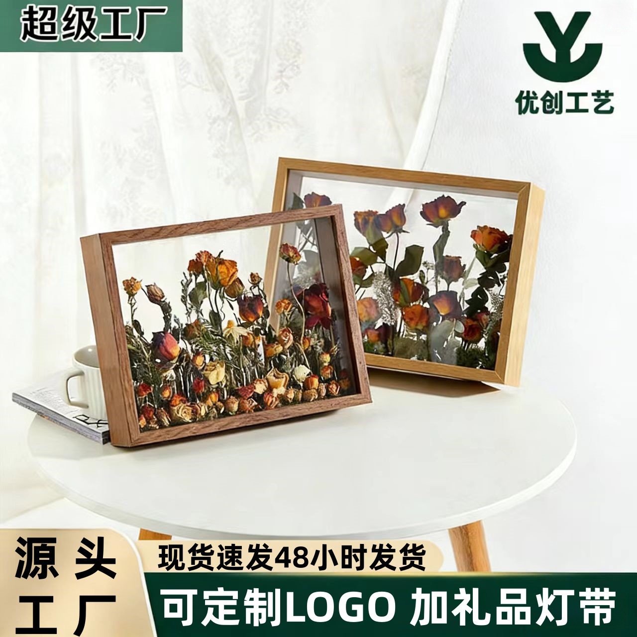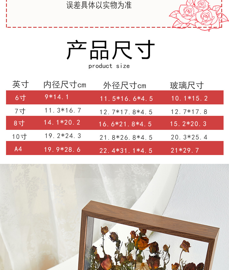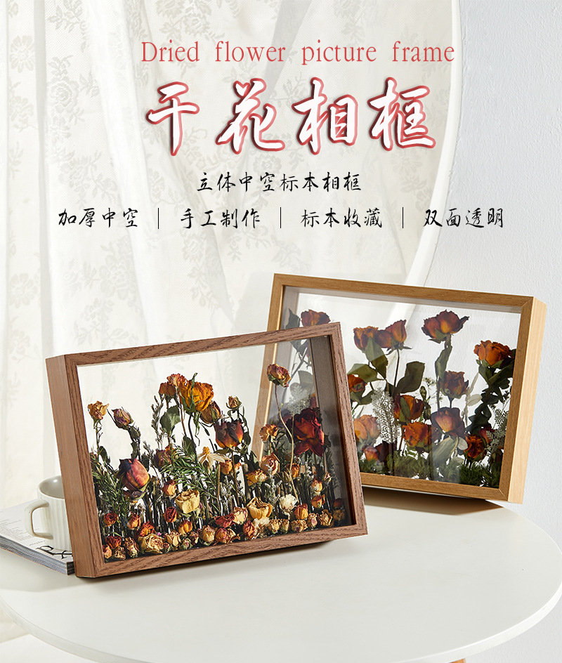드라이플라워 액자 장식용 표본 액자 수제 원목 DIY 중공 원목색 나무 액자 도매 중공 디자인