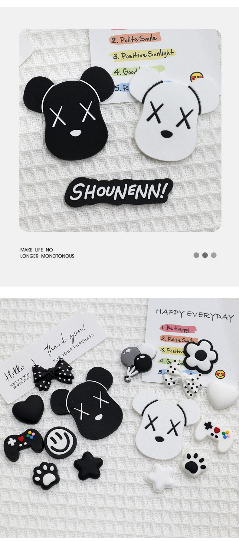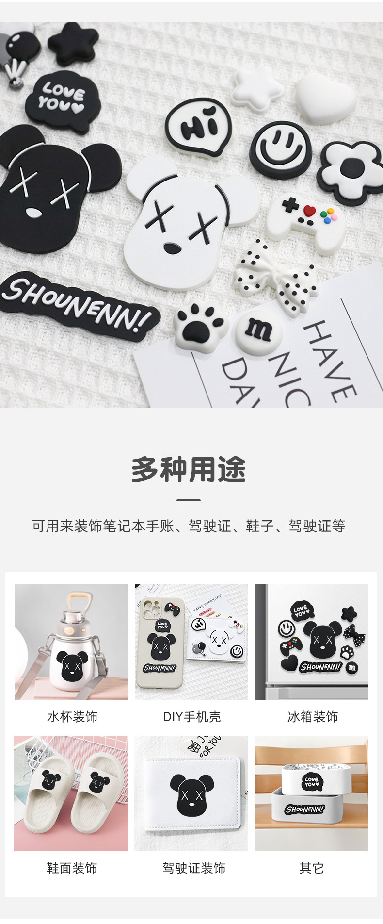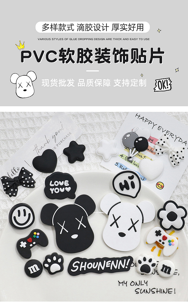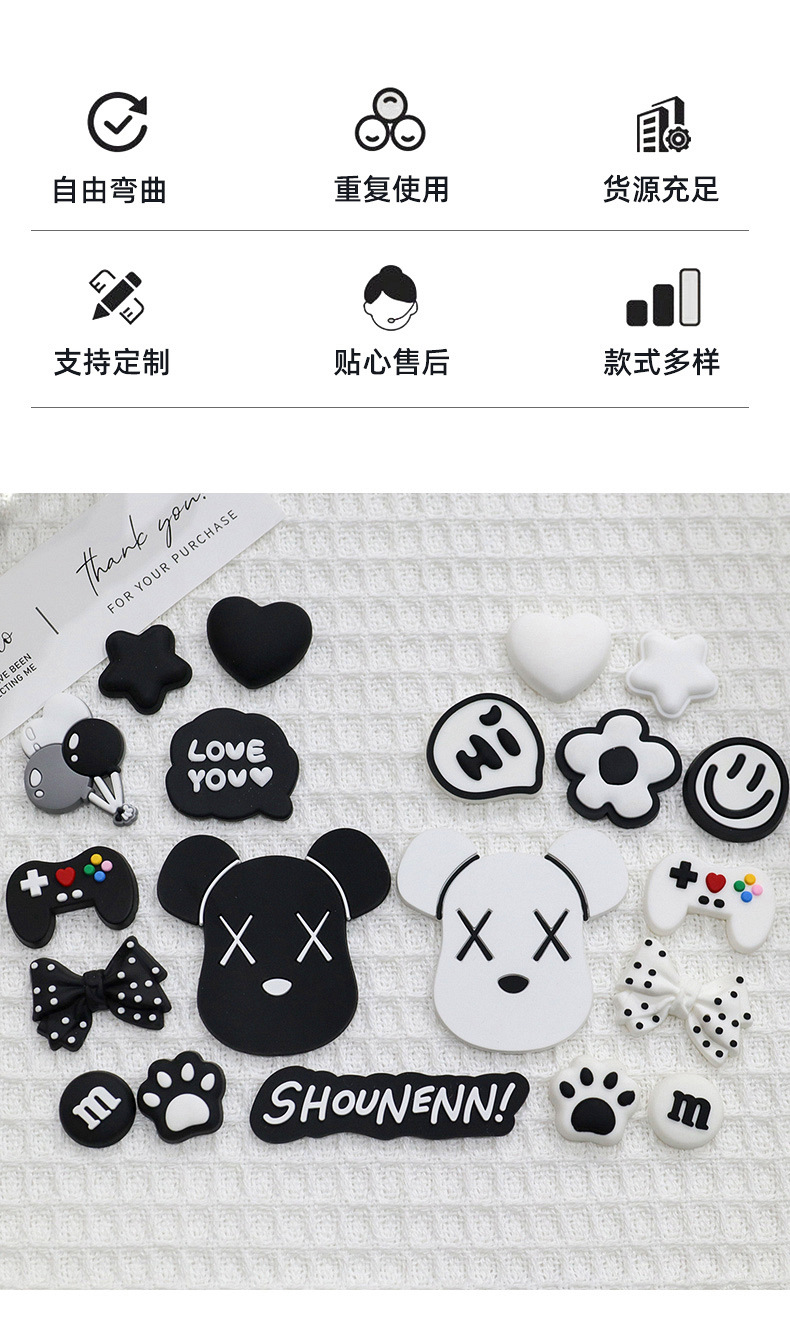 흑백 폭력적인 곰 머리 pvc 구멍 신발 부드러운 고무 액세서리 휴대 전화 케이스 수하물 DIY 신발 장식 패치 소재스토어 가기