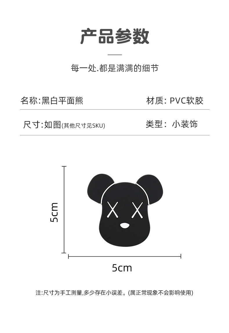 • 부드러운 접착제: 검은 플랫 베어 [4.8*5cm]