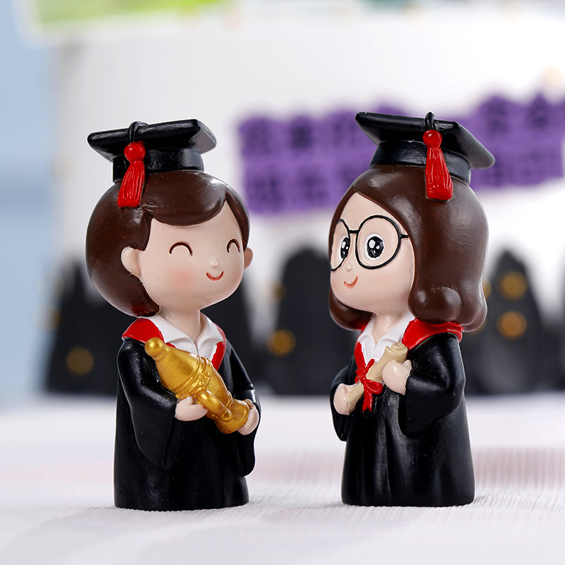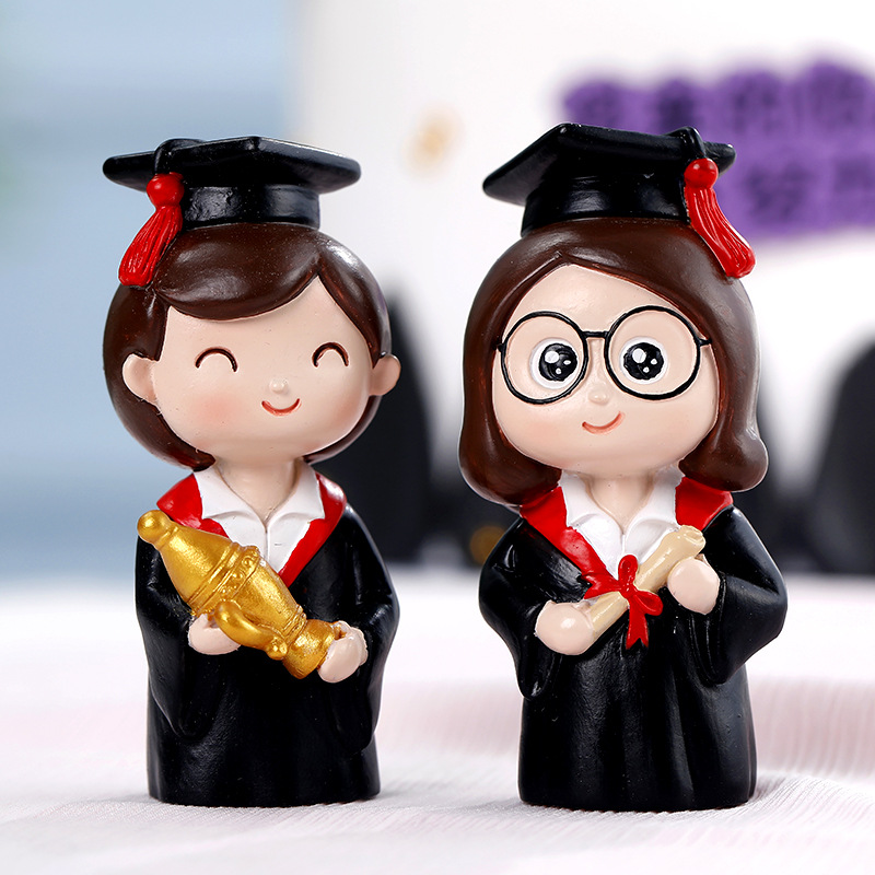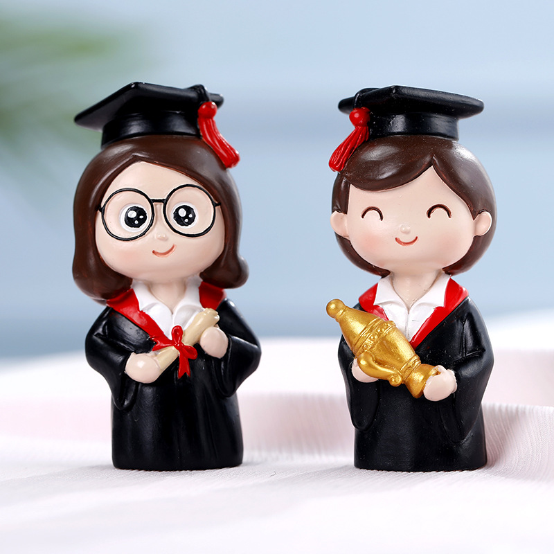 레진 소형 박사상 장식품, 남자아이 기념품, 여자아이 데스크탑 장식품, 핸드메이드 피규어, 가정 장식품