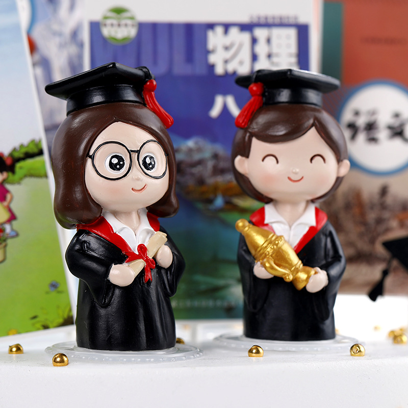 레진 소형 박사상 장식품, 남자아이 기념품, 여자아이 데스크탑 장식품, 핸드메이드 피규어, 가정 장식품스토어 가기