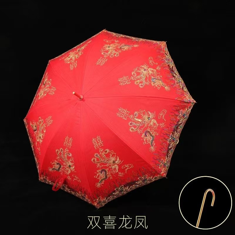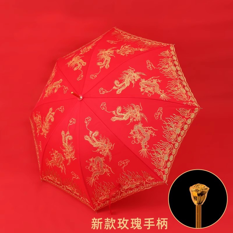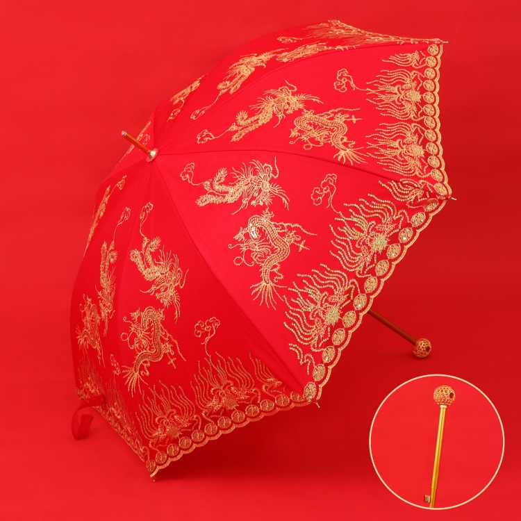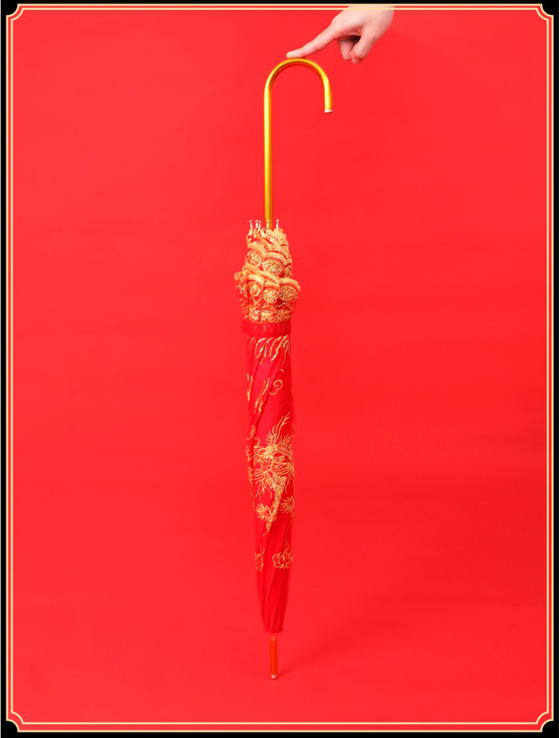 더블 데크 드래곤과 피닉스 레드 우산 웨딩 신부 결혼 신부 우산 빨간 우산 축제 웨딩 우산