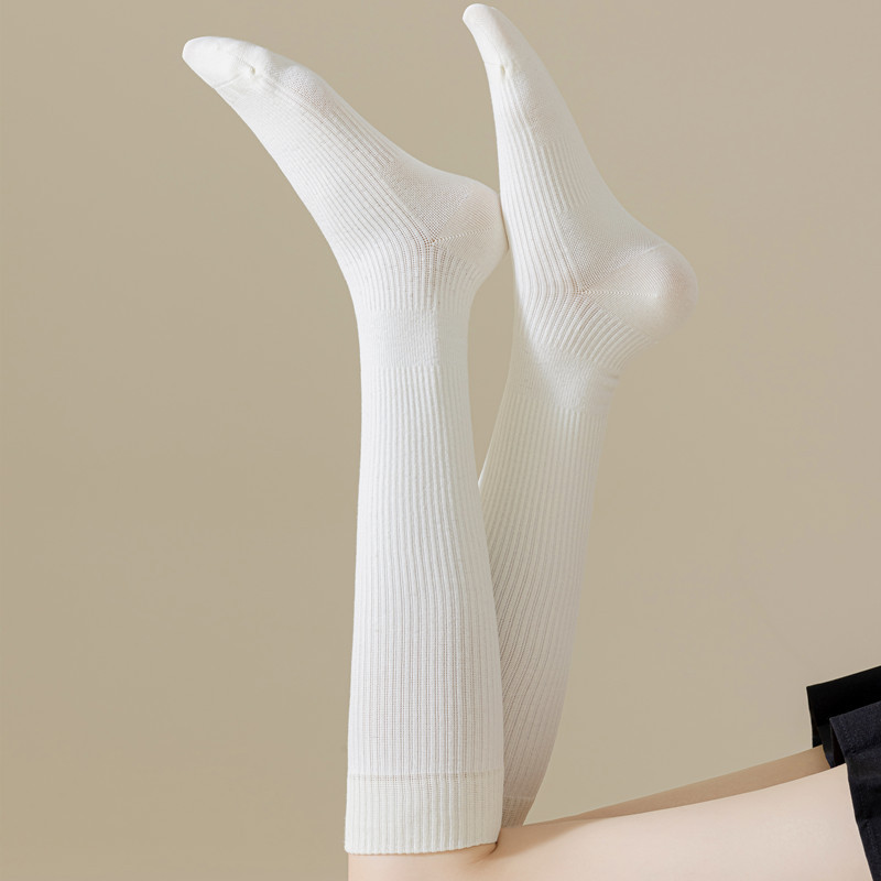 새로운 압력 스키니 다리 양말 여성용 단색 모양의 긴 양말 스포츠 미끄럼 방지 긴 튜브 무릎 양말 면