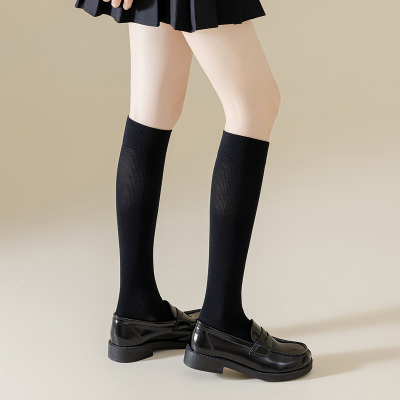 새로운 압력 스키니 다리 양말 여성용 단색 모양의 긴 양말 스포츠 미끄럼 방지 긴 튜브 무릎 양말 면스토어 가기