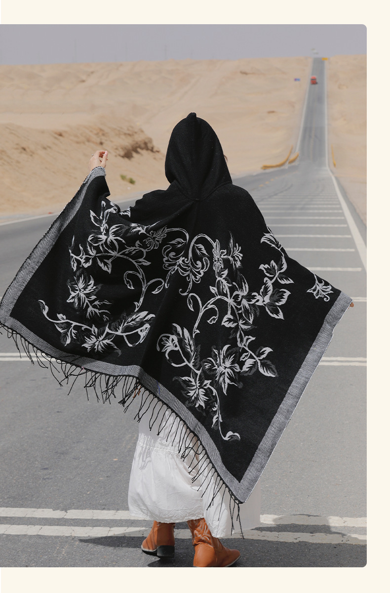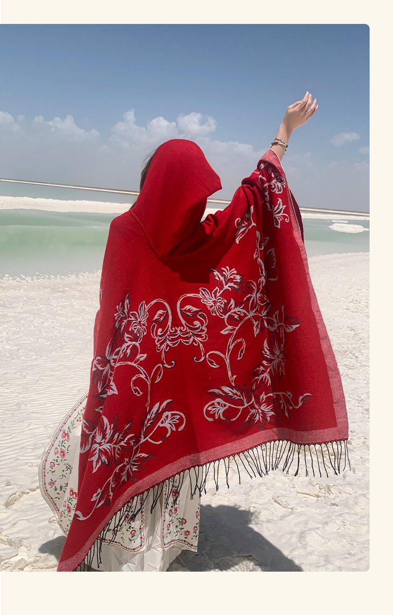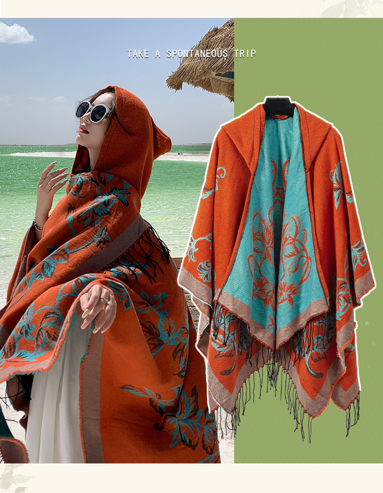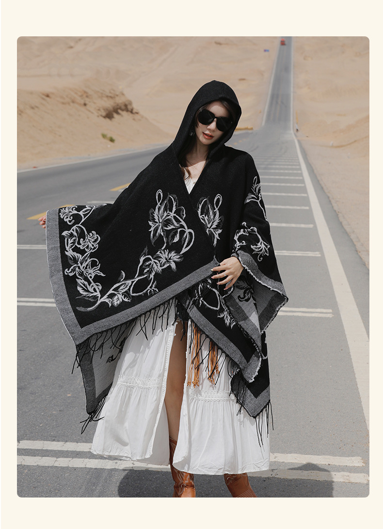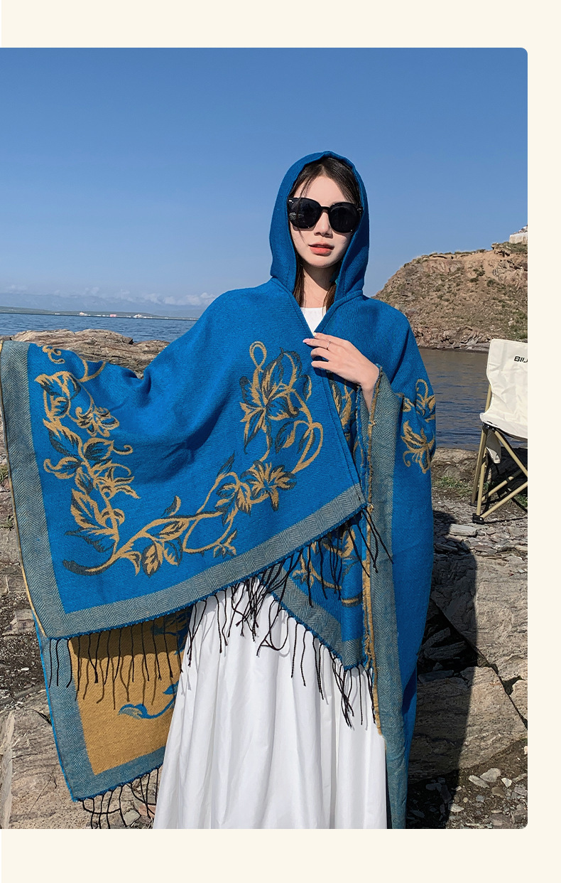 모자가 있는 에스닉 스타일, 목도리, 망토, 술, 리장, 티베트, 북서 관광, 양면 사진 보관, 외부 방풍스토어 가기