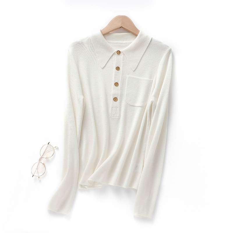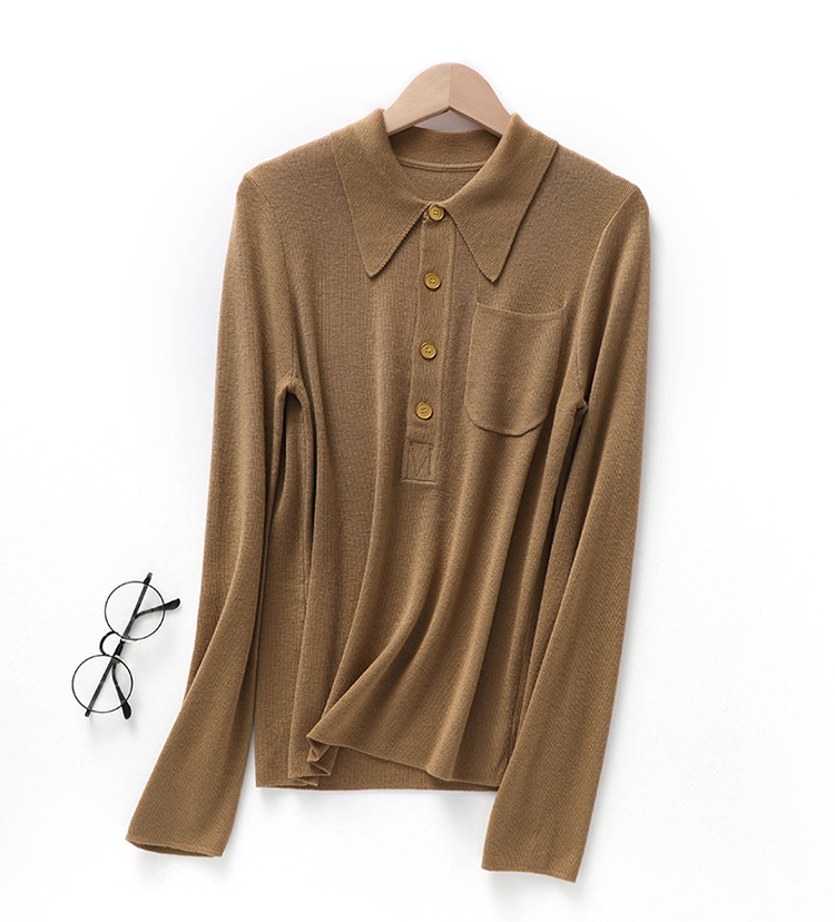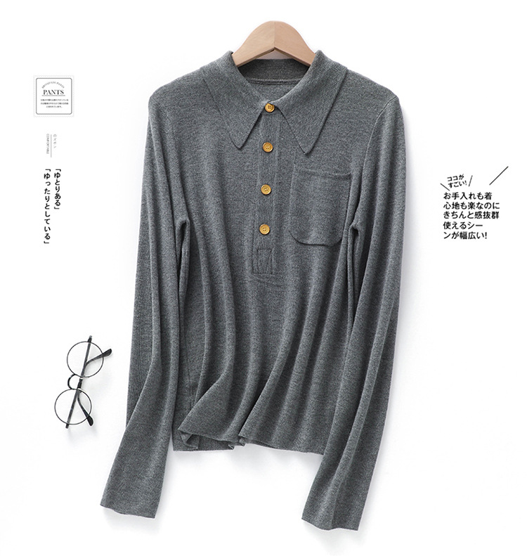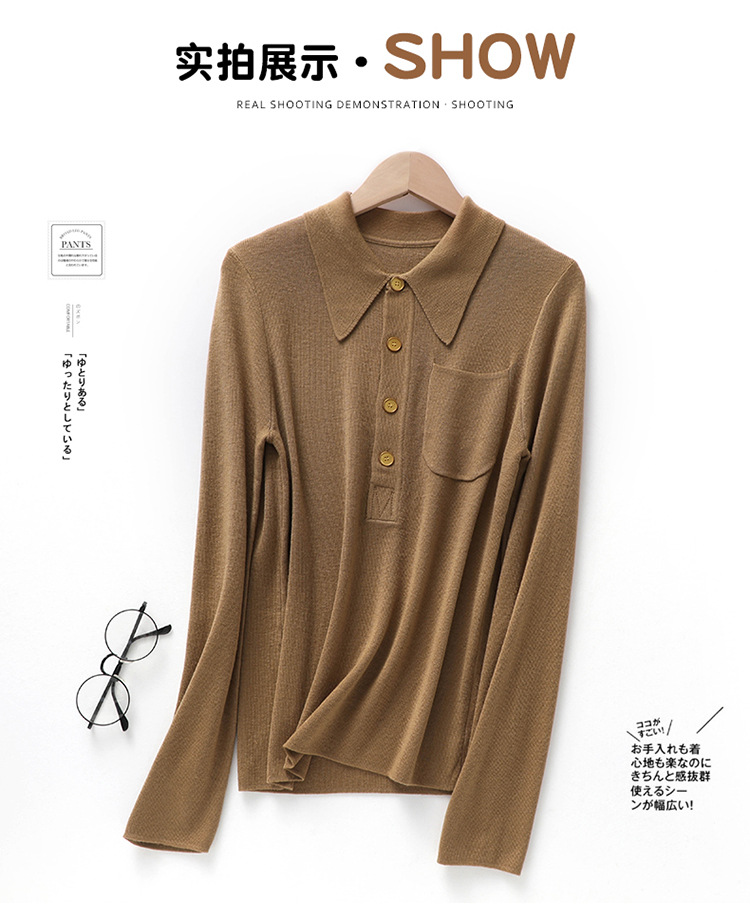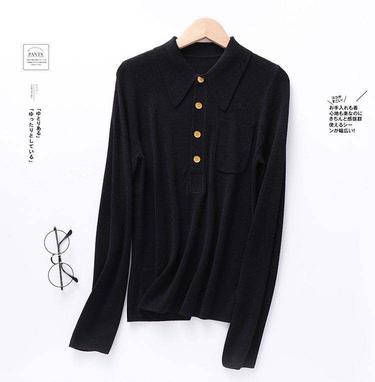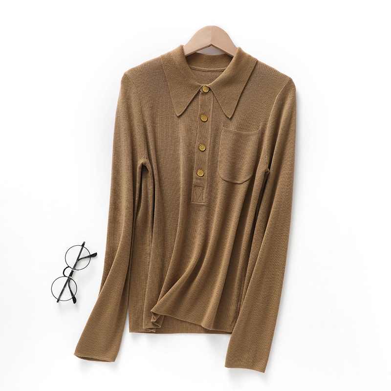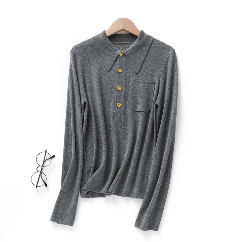 캐주얼하고 얇은 폴로 칼라 니트 여성용 가을 겨울 슬림핏 베이스 스웨터 반 오픈 칼라 울 스웨터