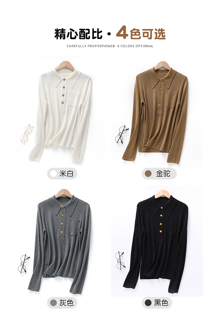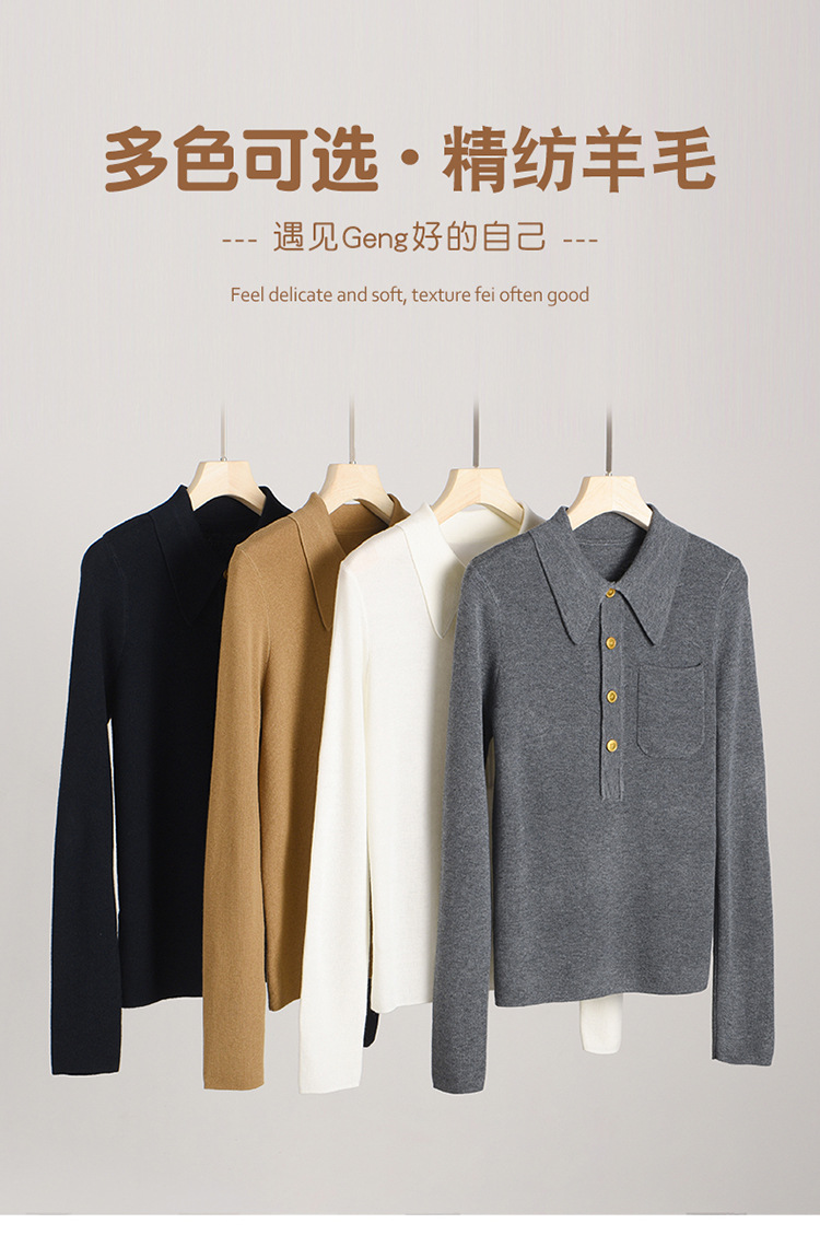캐주얼하고 얇은 폴로 칼라 니트 여성용 가을 겨울 슬림핏 베이스 스웨터 반 오픈 칼라 울 스웨터스토어 가기