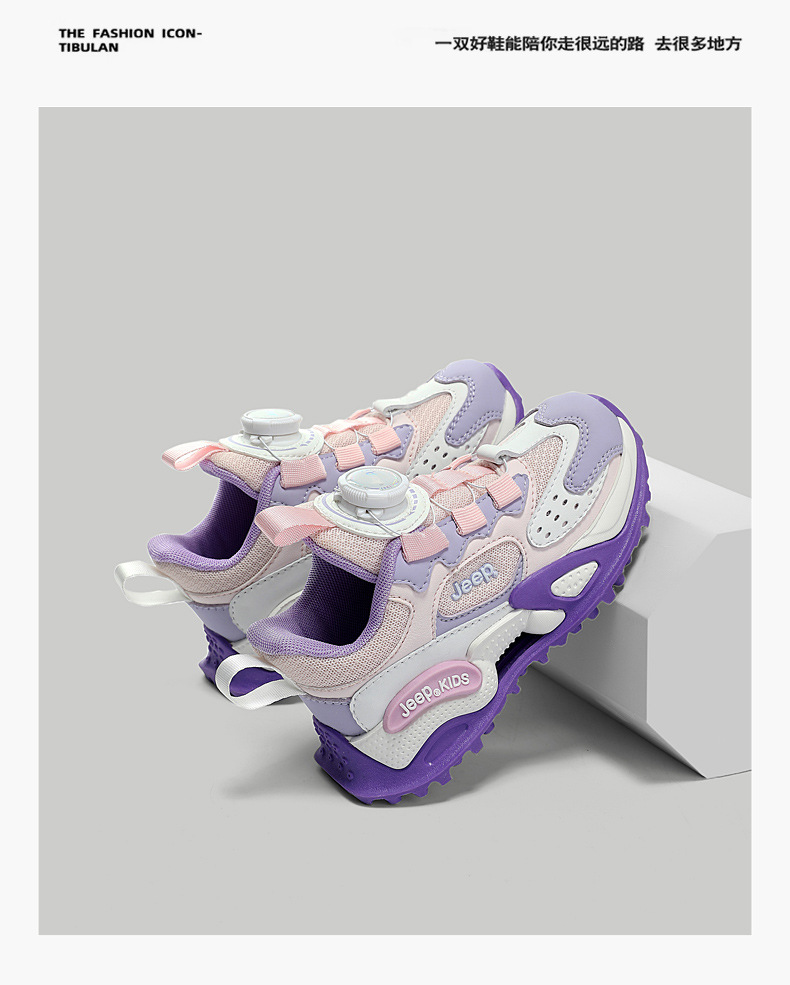 지프 소년 운동화 2023 가을 새로운 회전 버튼 신발 통기성 어린이 미끄럼 방지 신발 경량 여성 신발