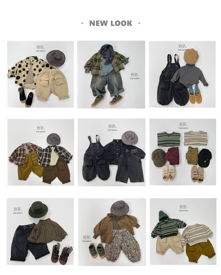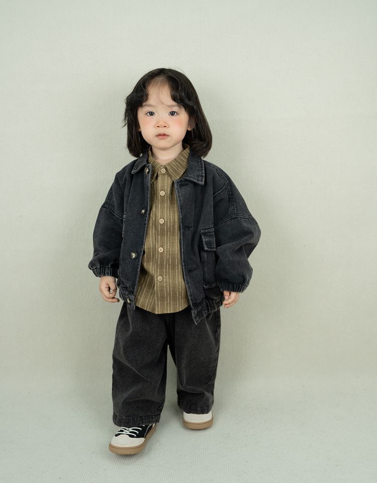 어린이 바지 가을 새로운 소년과 소녀 한국어 단색 복고풍 데님 바지 아기 간단한 데님 와이드 레그 바지스토어 가기