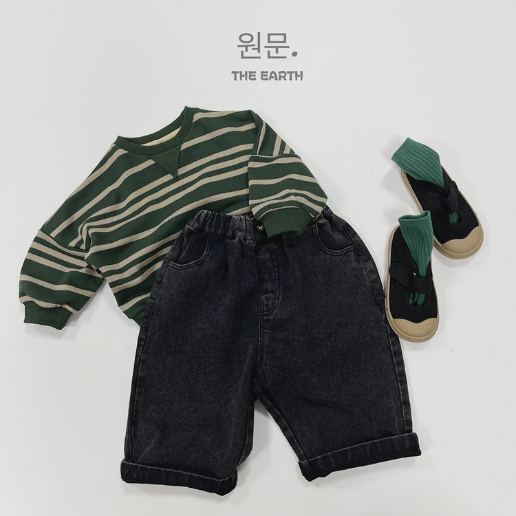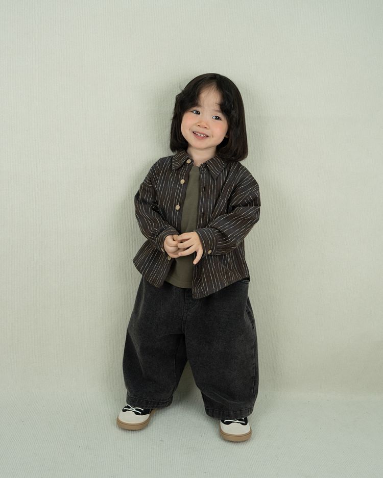어린이 바지 가을 새로운 소년과 소녀 한국어 단색 복고풍 데님 바지 아기 간단한 데님 와이드 레그 바지
