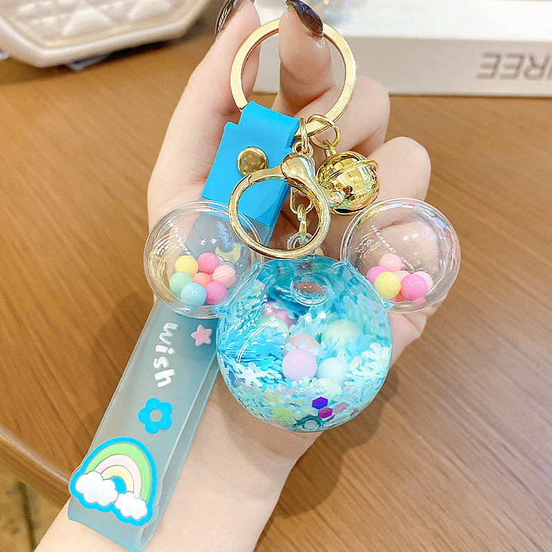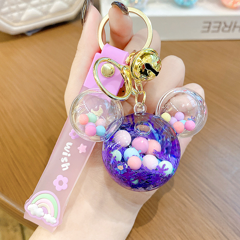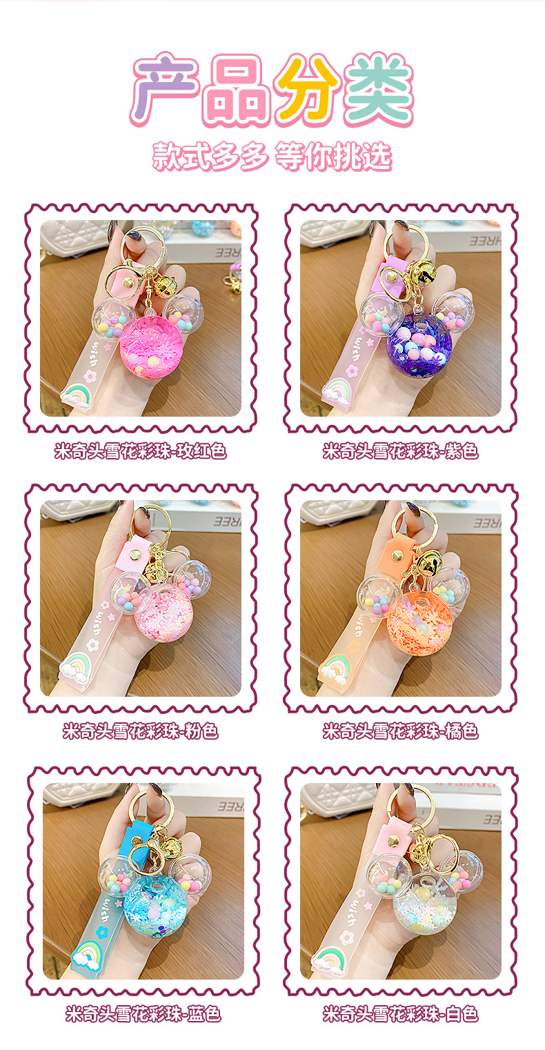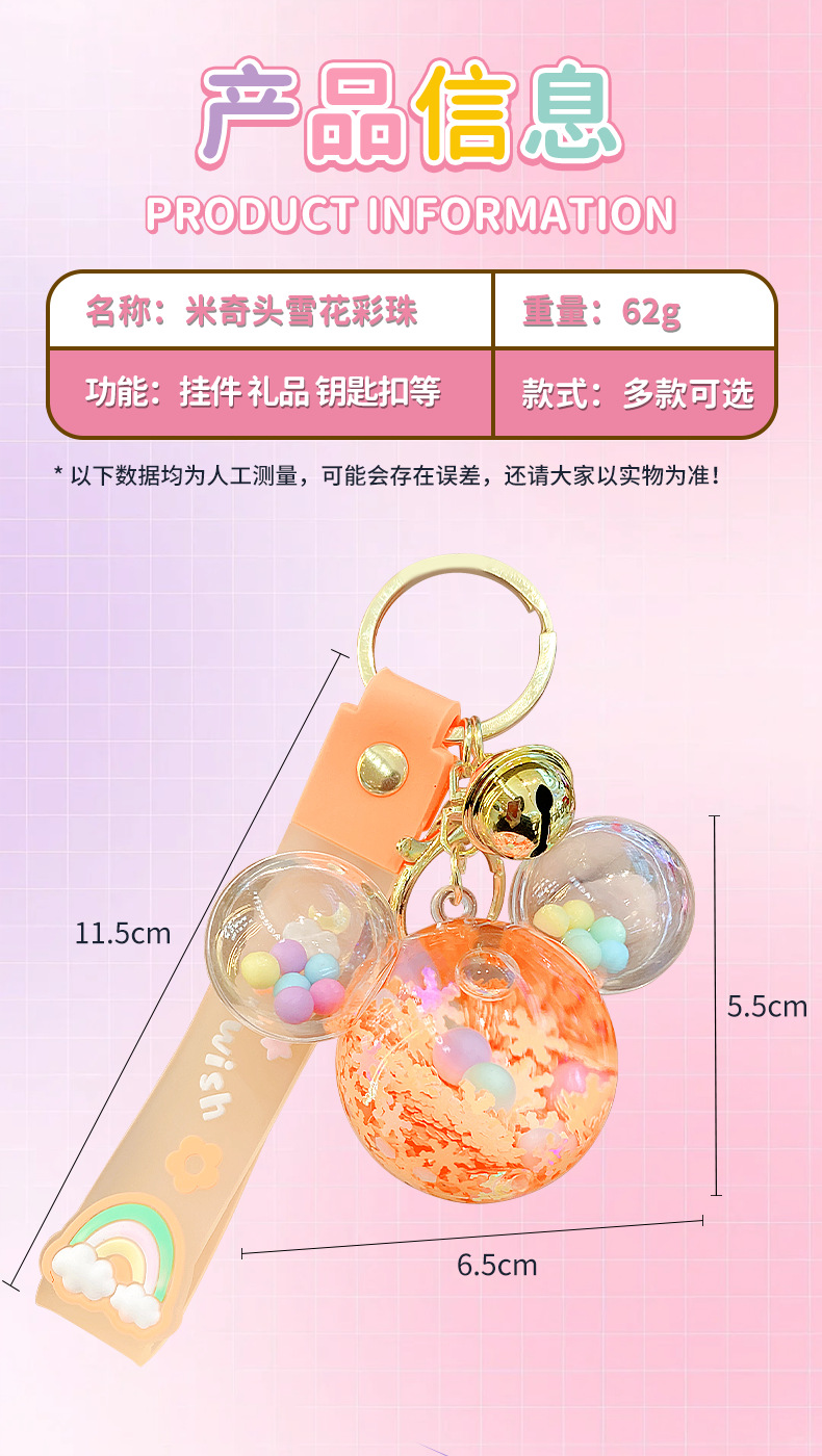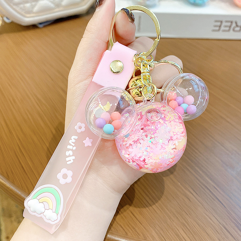 만화 야광 눈송이 미키 머리 모래시계 키체인 여성용 정교하고 귀여운 가방 장식 커플 가방 키체인스토어 가기