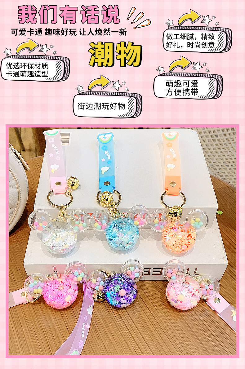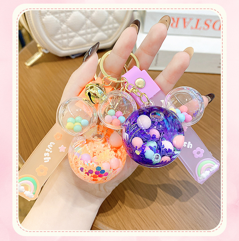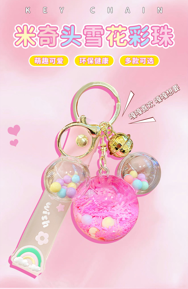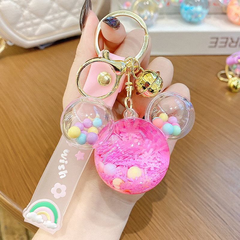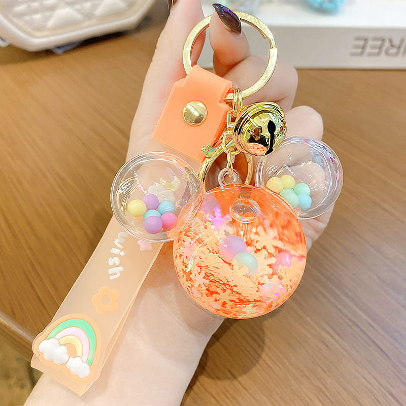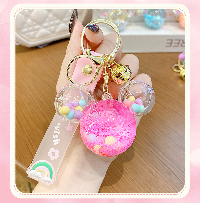 만화 야광 눈송이 미키 머리 모래시계 키체인 여성용 정교하고 귀여운 가방 장식 커플 가방 키체인스토어 가기
