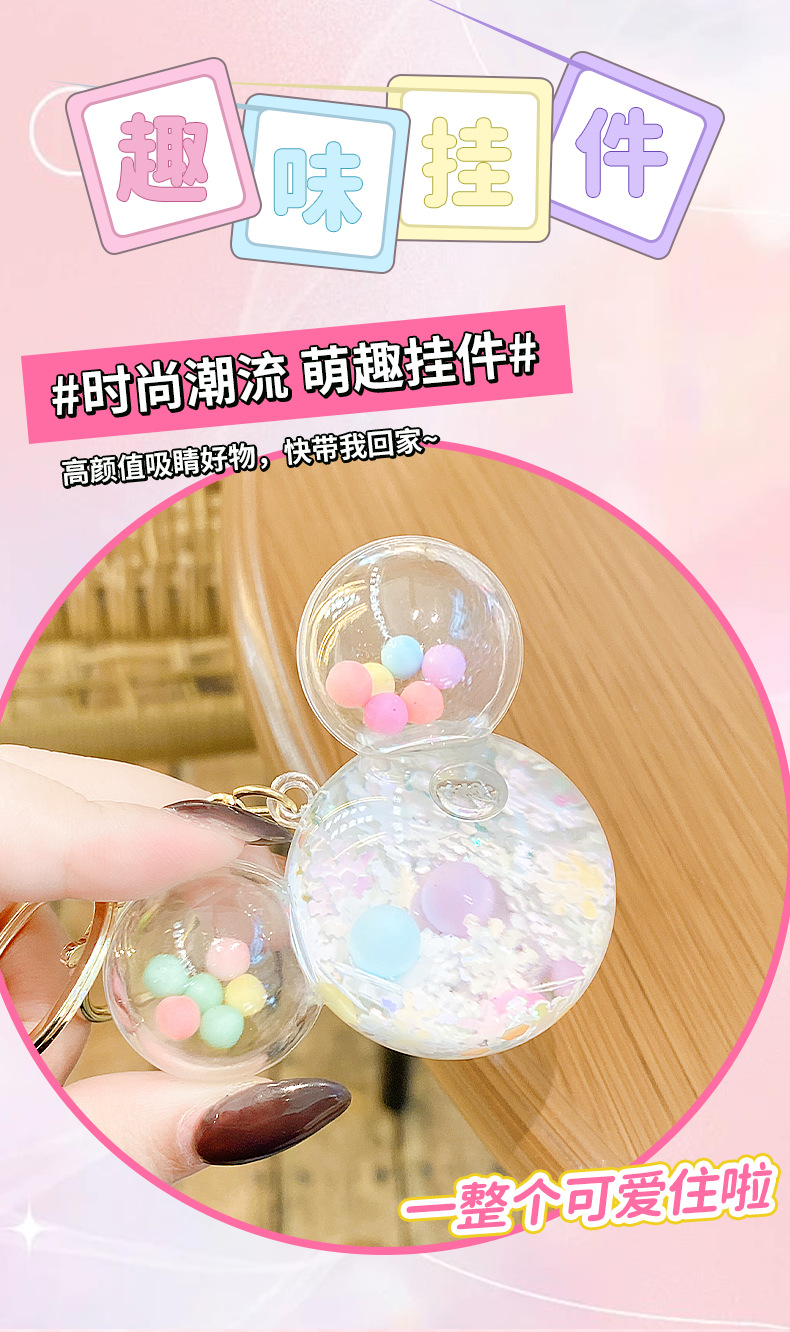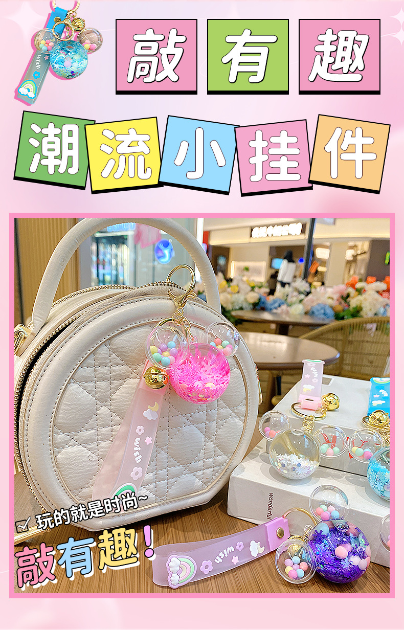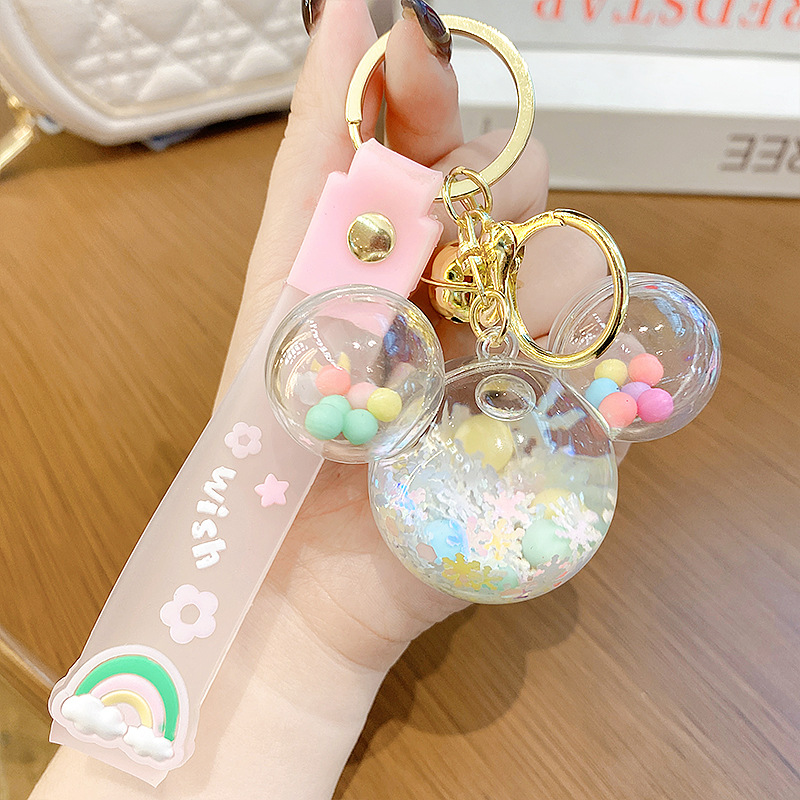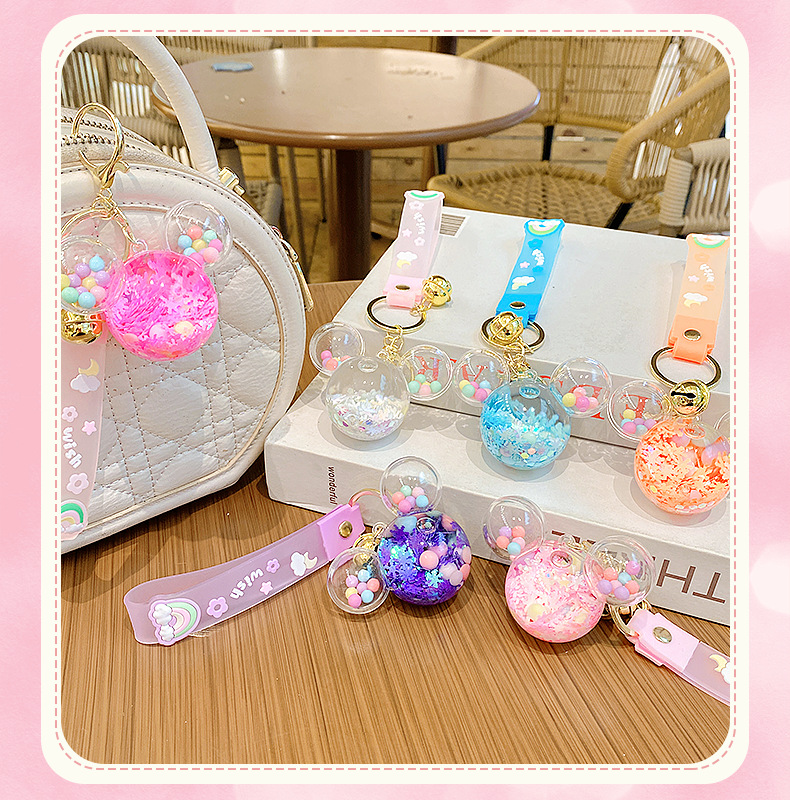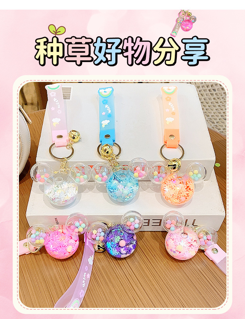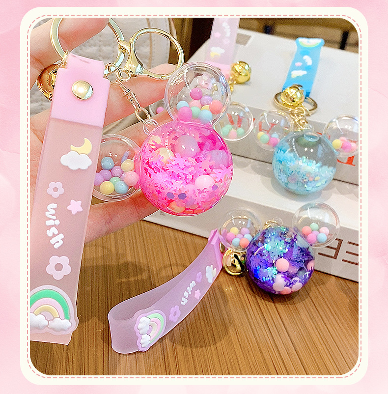 만화 야광 눈송이 미키 머리 모래시계 키체인 여성용 정교하고 귀여운 가방 장식 커플 가방 키체인스토어 가기