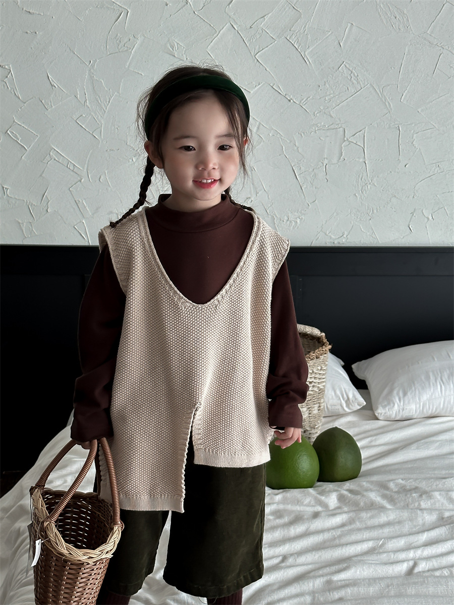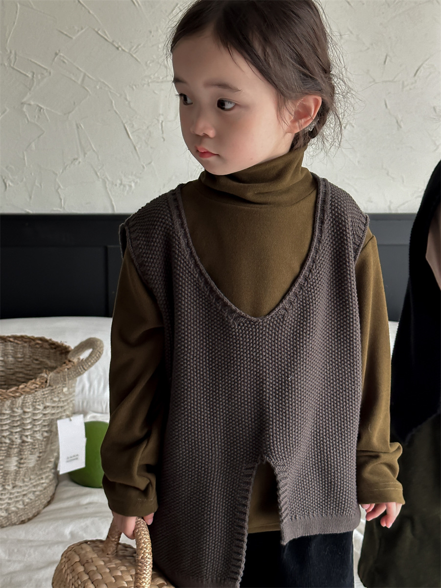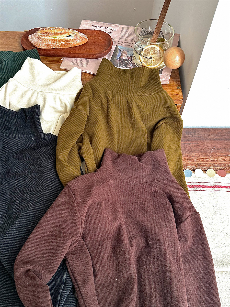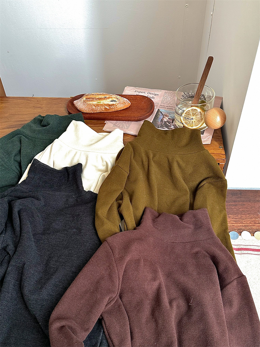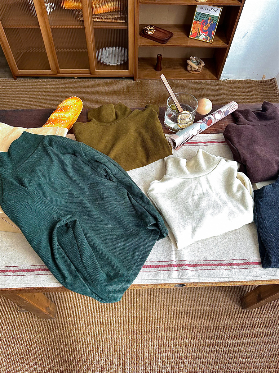 Jiaye 가을 겨울 신제품 2025 아동용 솔리드 컬러 코튼 터틀넥 바닥 셔츠 남성용 및 여성용 베이비 스타일 핏 스트립 내부 T스토어 가기
