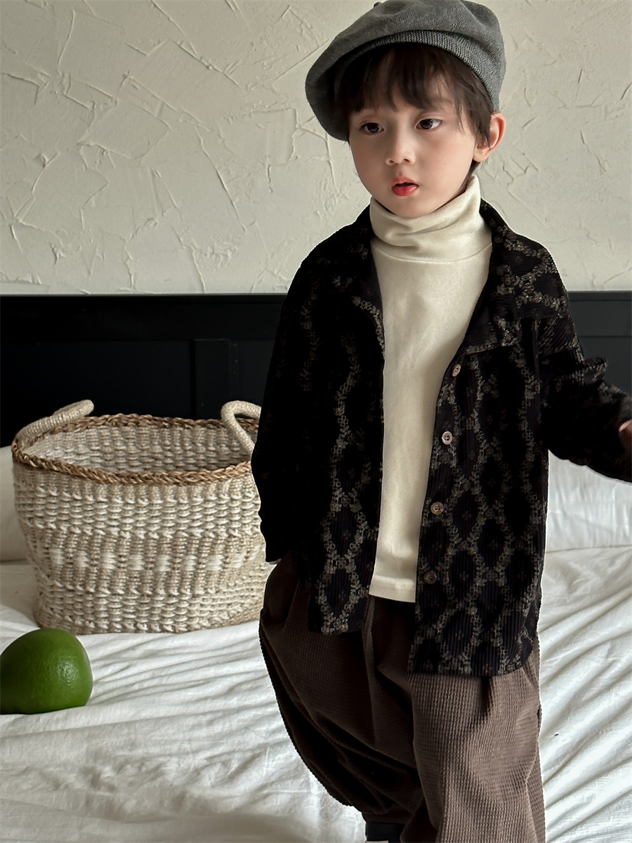 Jiaye 가을 겨울 신제품 2025 아동용 솔리드 컬러 코튼 터틀넥 바닥 셔츠 남성용 및 여성용 베이비 스타일 핏 스트립 내부 T