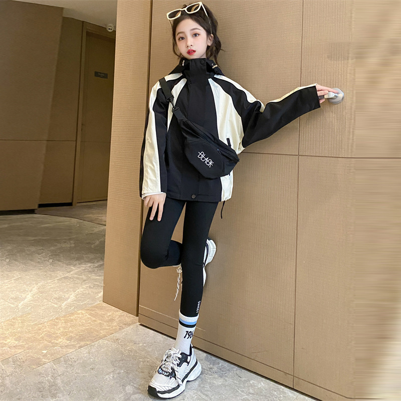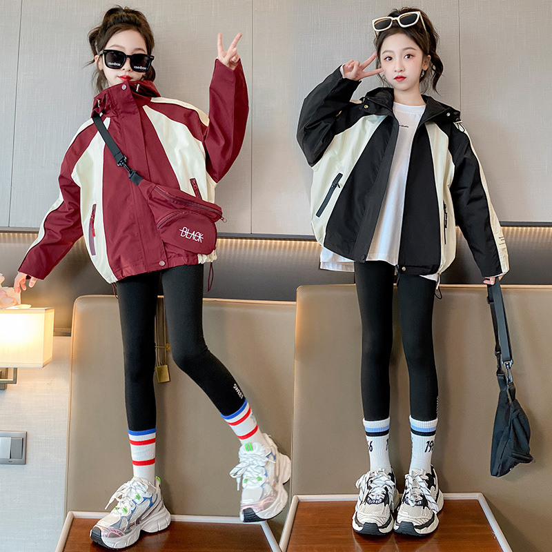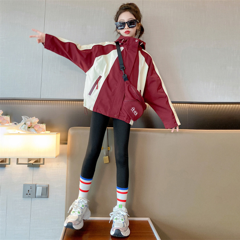 한국 스타일 아동복 2025 여아용 재킷 봄 가을 신상 후드 아웃도어 의류 어린이 패션 윈드브레이커
