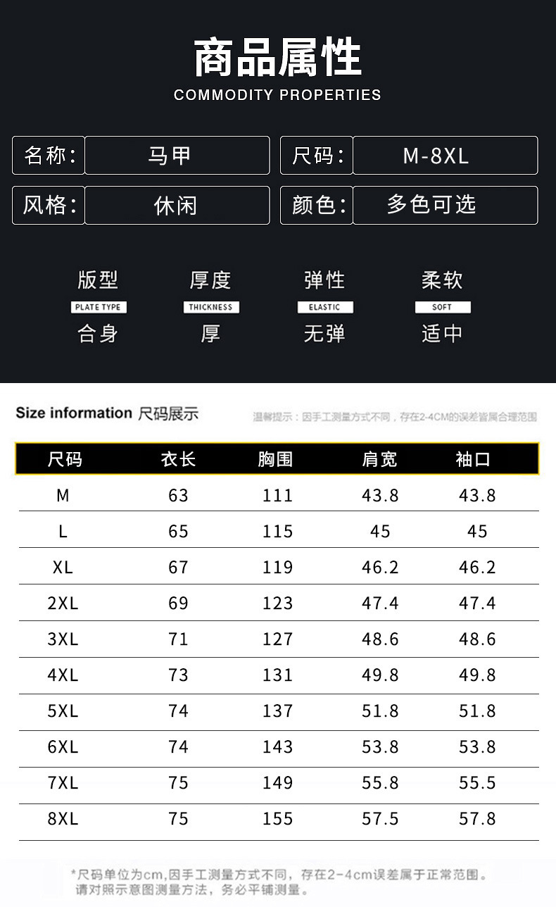M-8XL 조끼 남자의 가을과 겨울 다운 면 조끼 겉옷 조끼 2023 새로운 조끼 따뜻한 민소매 재킷