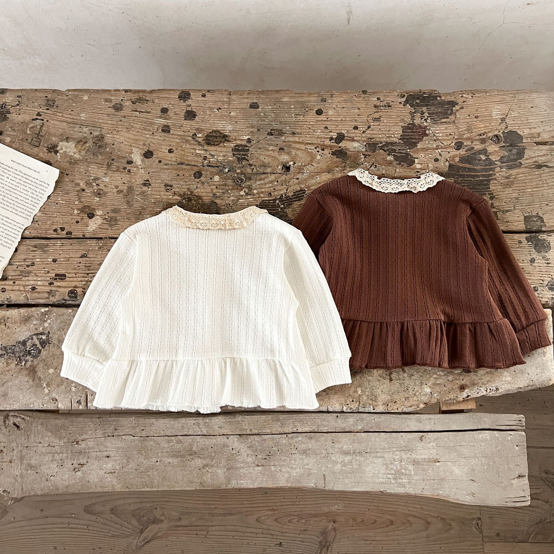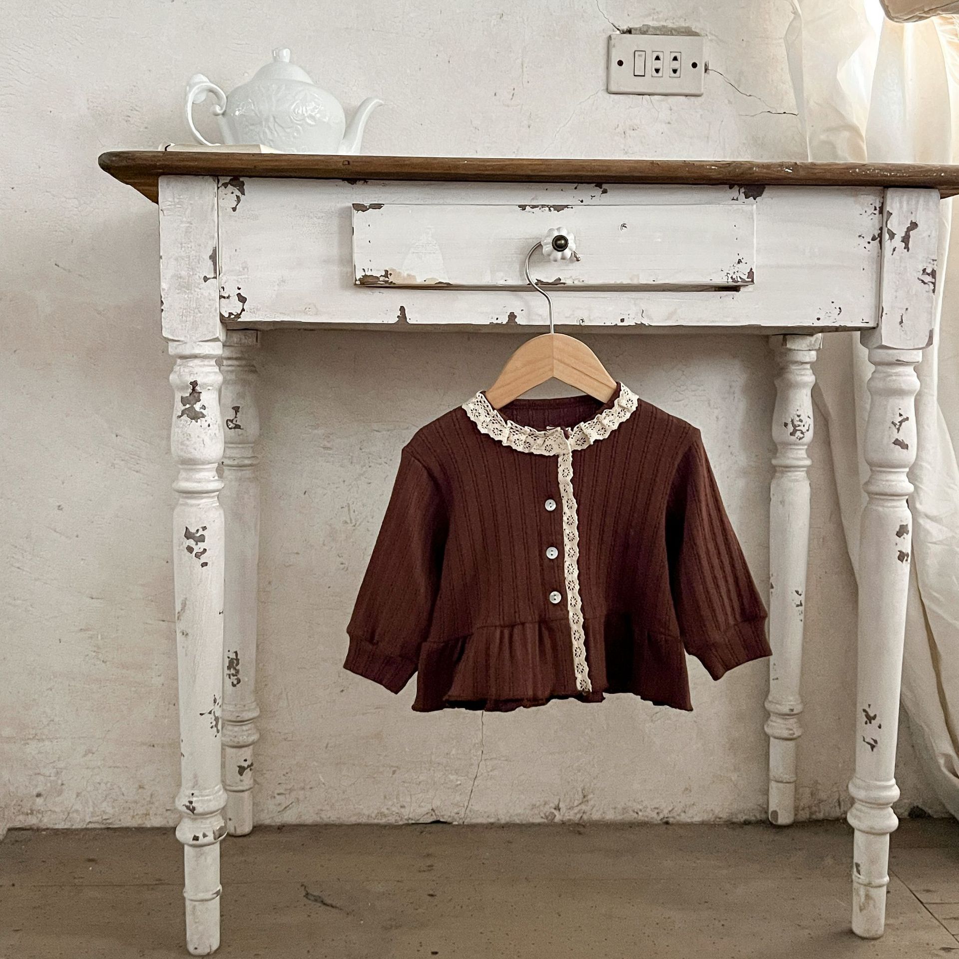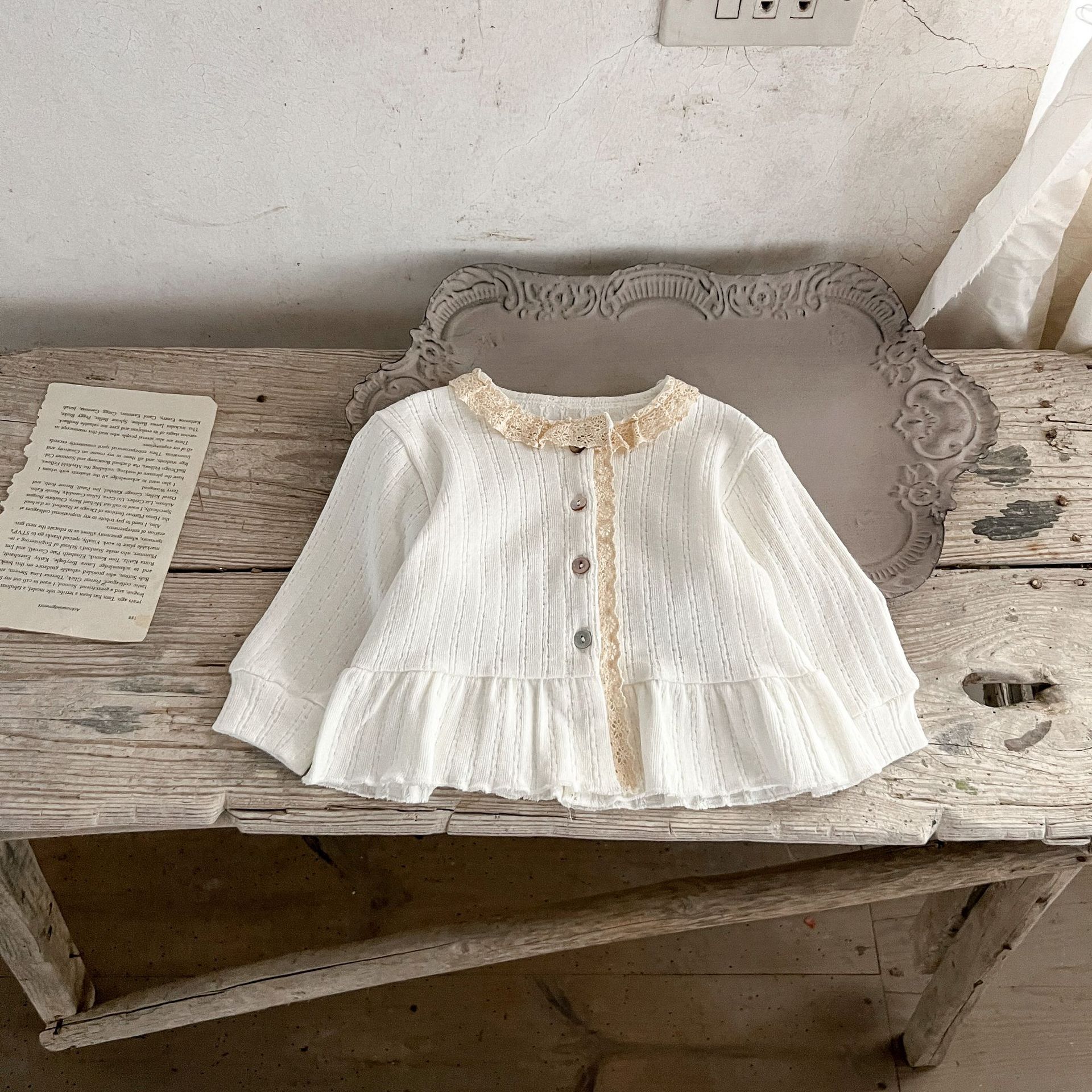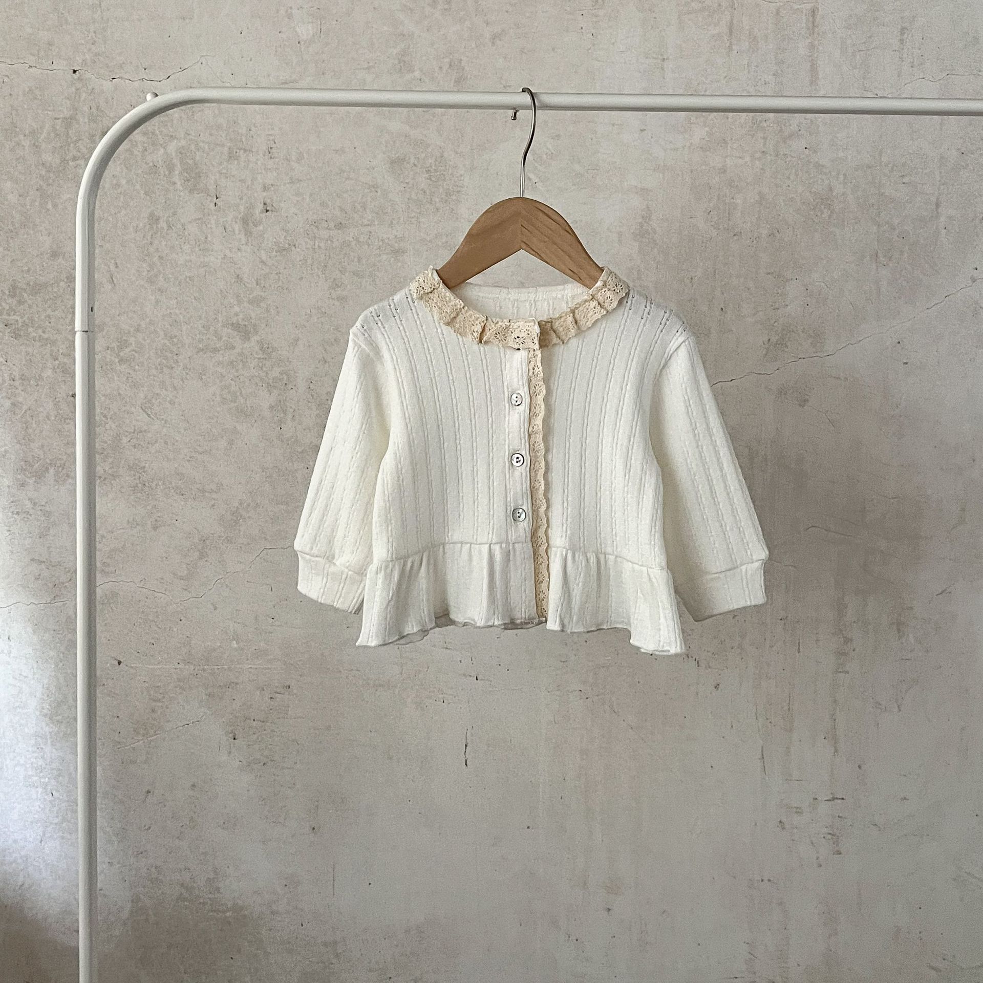 한국 스타일 소녀의 아기의 가을 겉옷 자카드 레이스 가디건 아기의 순면 올매치 따뜻한 유행 재킷스토어 가기