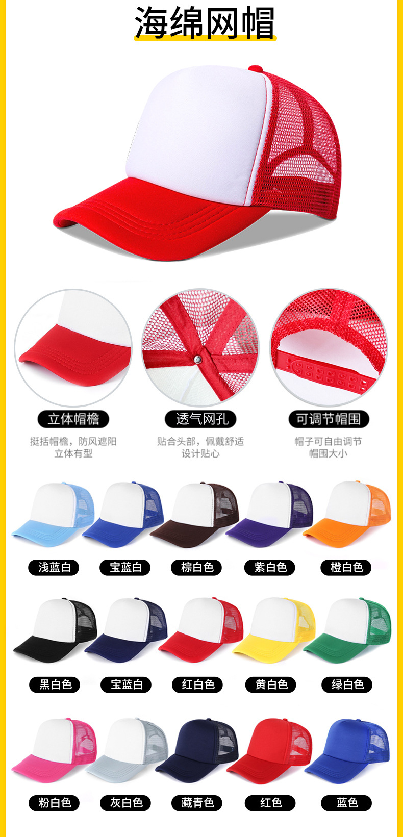 스폰지 그물 캡 인쇄 로고 두꺼운 태양 모자 성인 어린이 태양 모자 컬러 매칭 스폰지 오리 혀 그물 캡스토어 가기