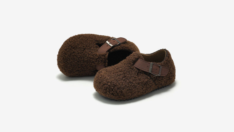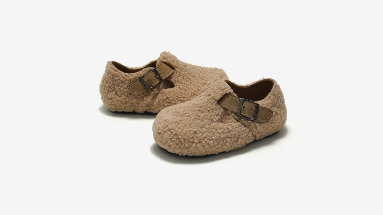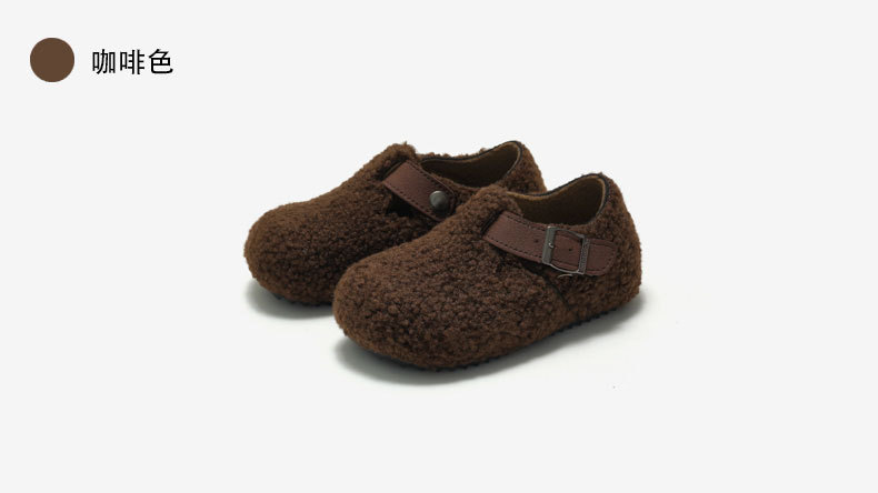 RUIZUSTOCK 가을과 겨울 새로운 어린이 코르크 모피 신발 따뜻한 소년 캐주얼 신발 기모 여자 면화 신발