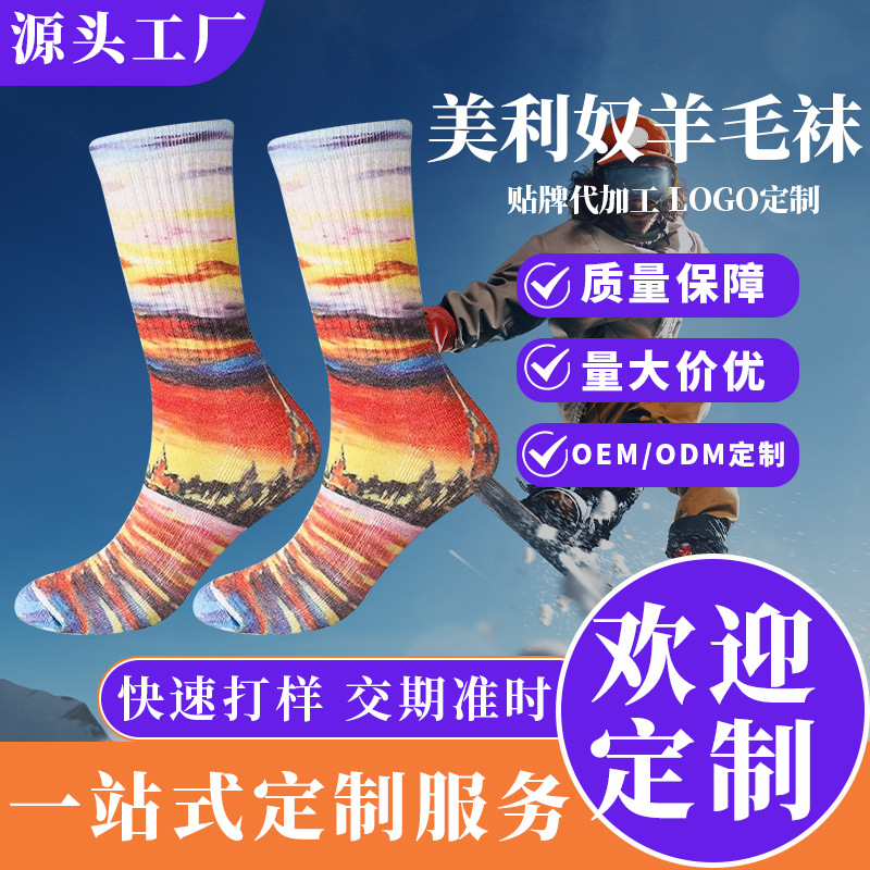 사용자 정의 메리노 울 양말 유행 타이 다이 양말 겨울 두꺼운 따뜻한 인쇄 스포츠 등산 스키 양말스토어 가기