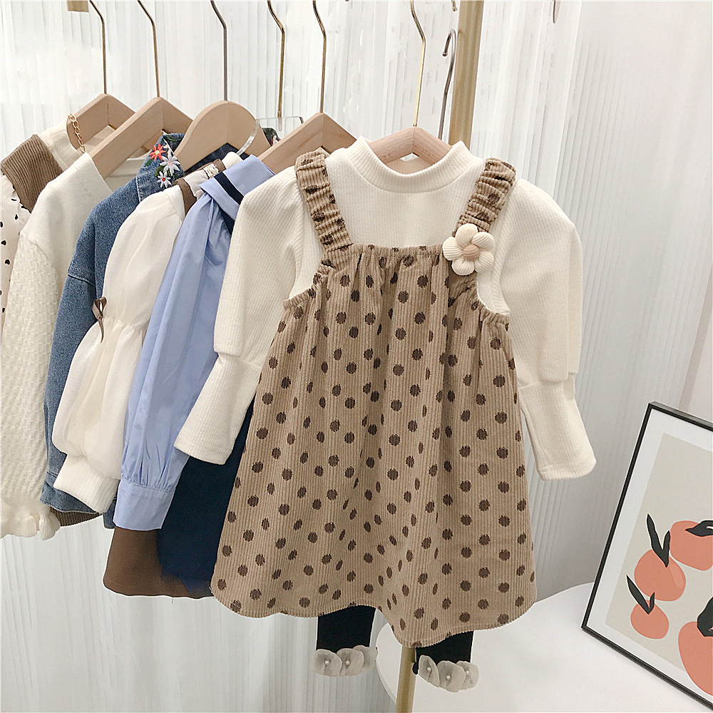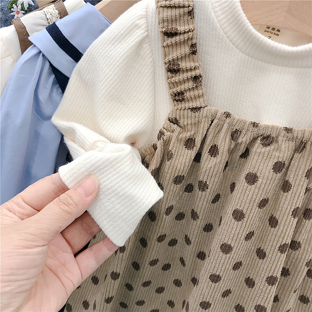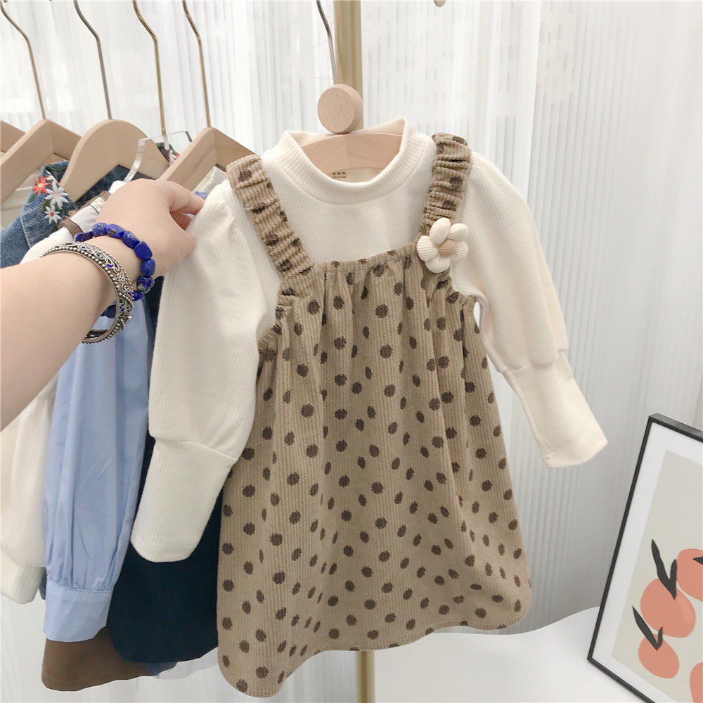 여자 가을 패션 날개 코듀로이 스트랩 스커트 투피스 세트 아기 어린이 가을 샤넬 세트 대외 무역스토어 가기