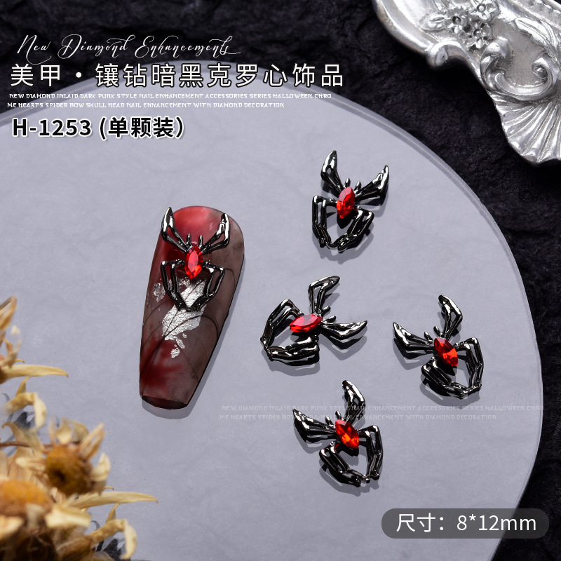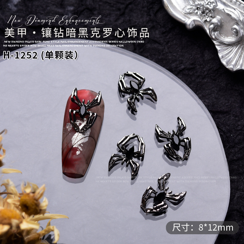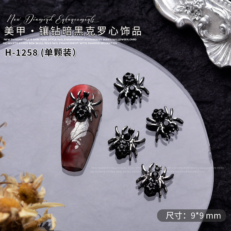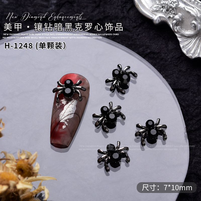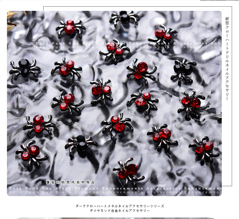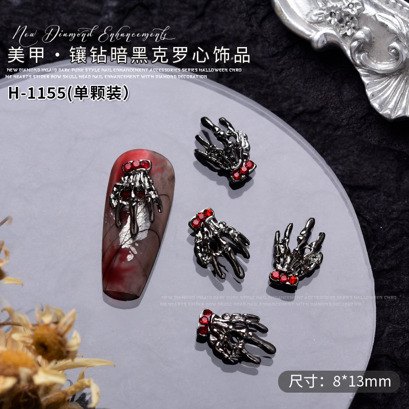 사이버 연예인 네일 아트 쥬얼리 다크 윈드 크론 뱀 해골 십자가 할로윈 총 블랙 메탈 네일 다이아몬드 장식품