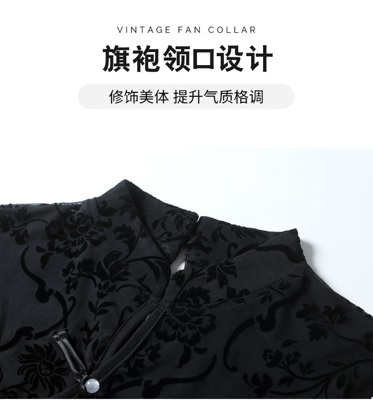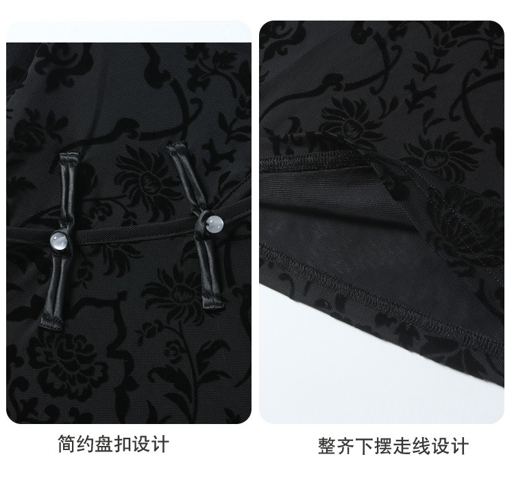 2023 가을 새로운 중국 조커 블랙 중공 무리 메쉬 버클 긴 소매 바닥 셔츠 여성 티셔츠 도매스토어 가기