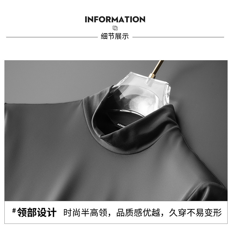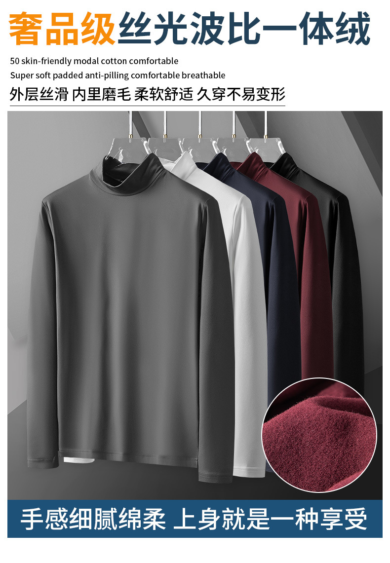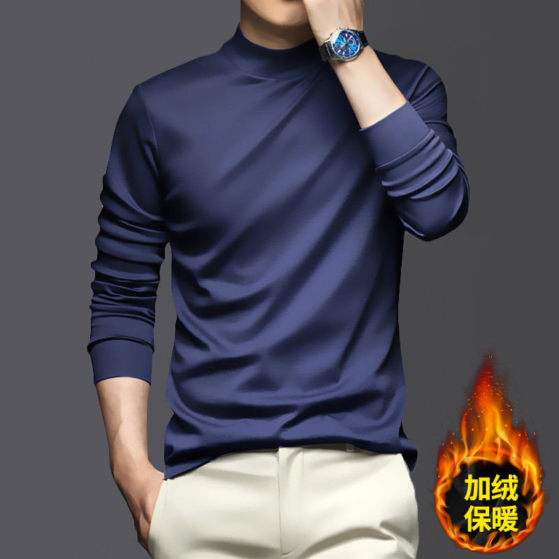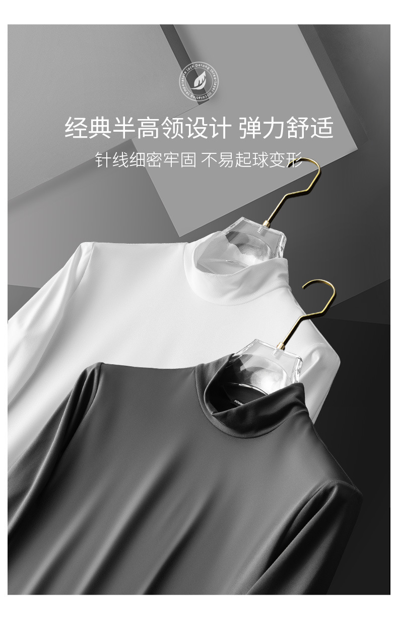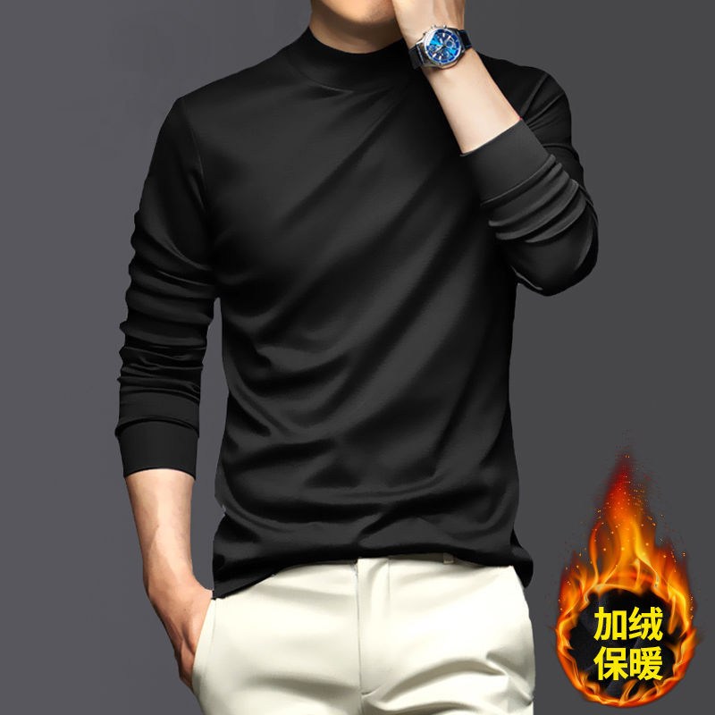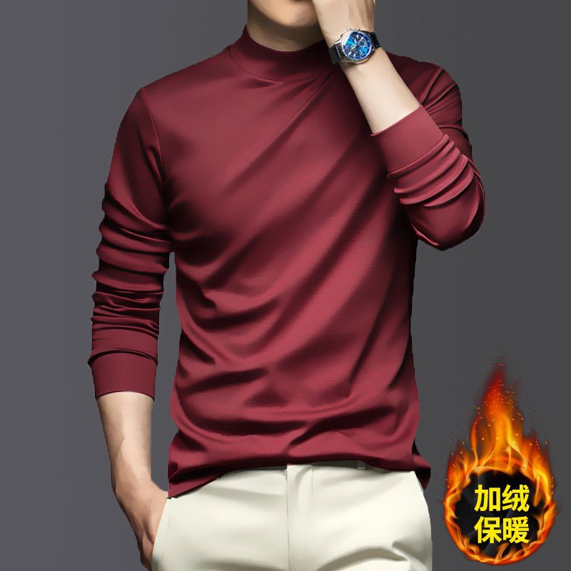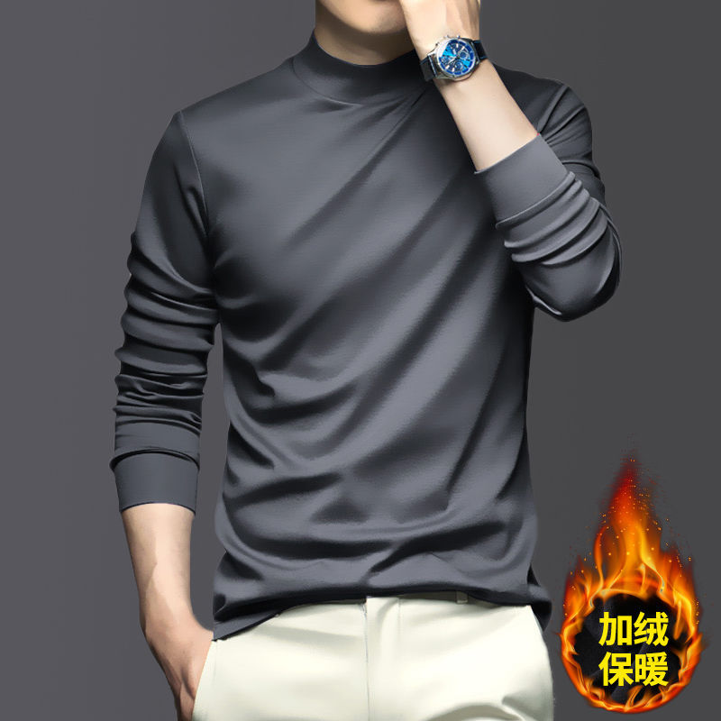 「실크라이트 얇은 벨벳」남성용 하프 터틀넥 베이스 레이어 긴팔 티셔츠 플러스 벨벳 보온 상의 양면 독일산 벨벳 티셔츠