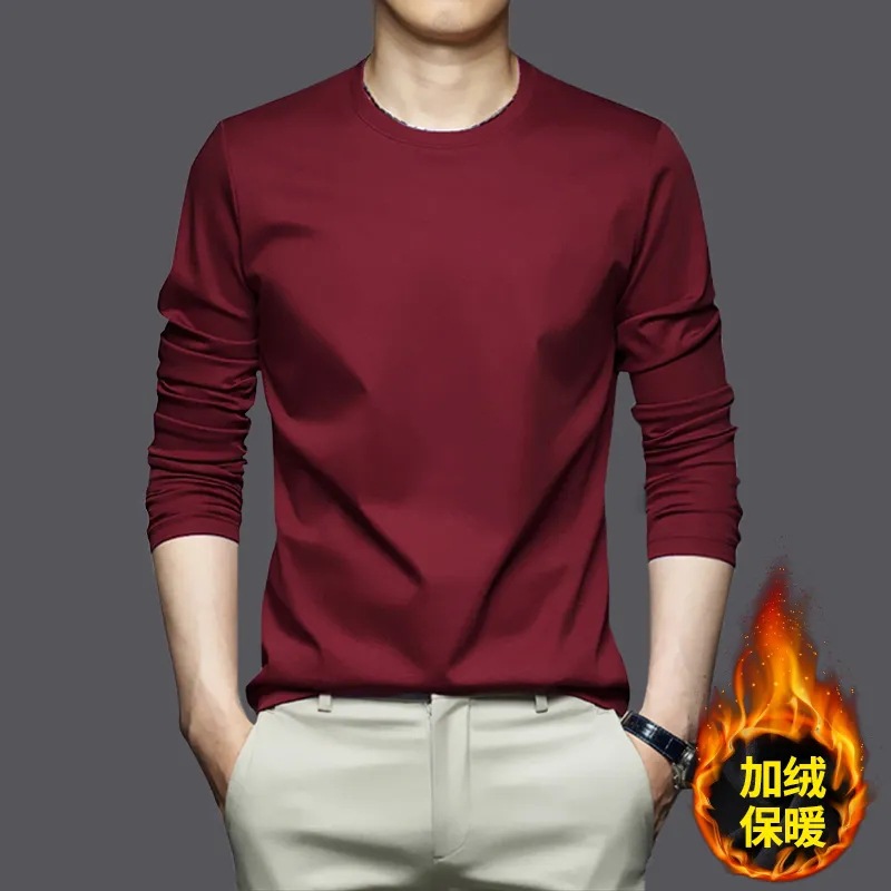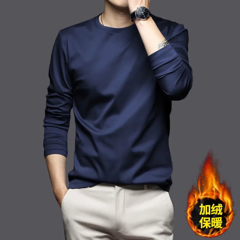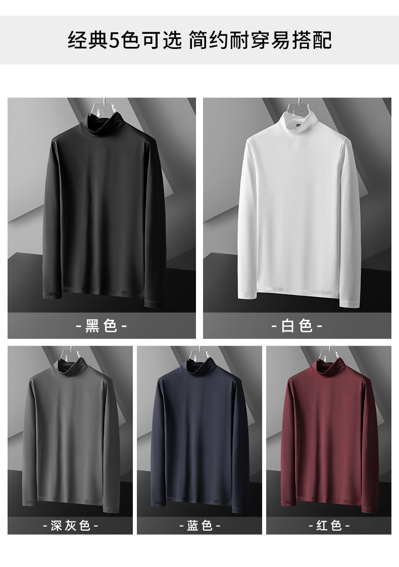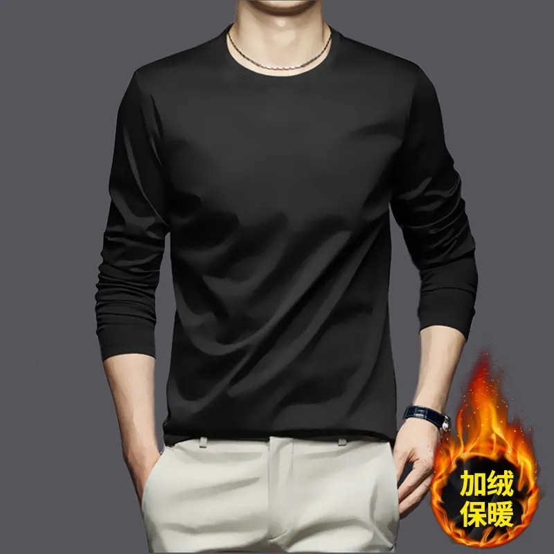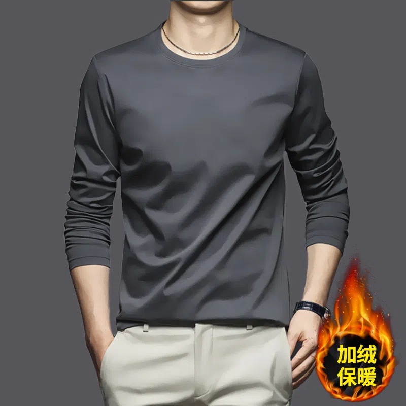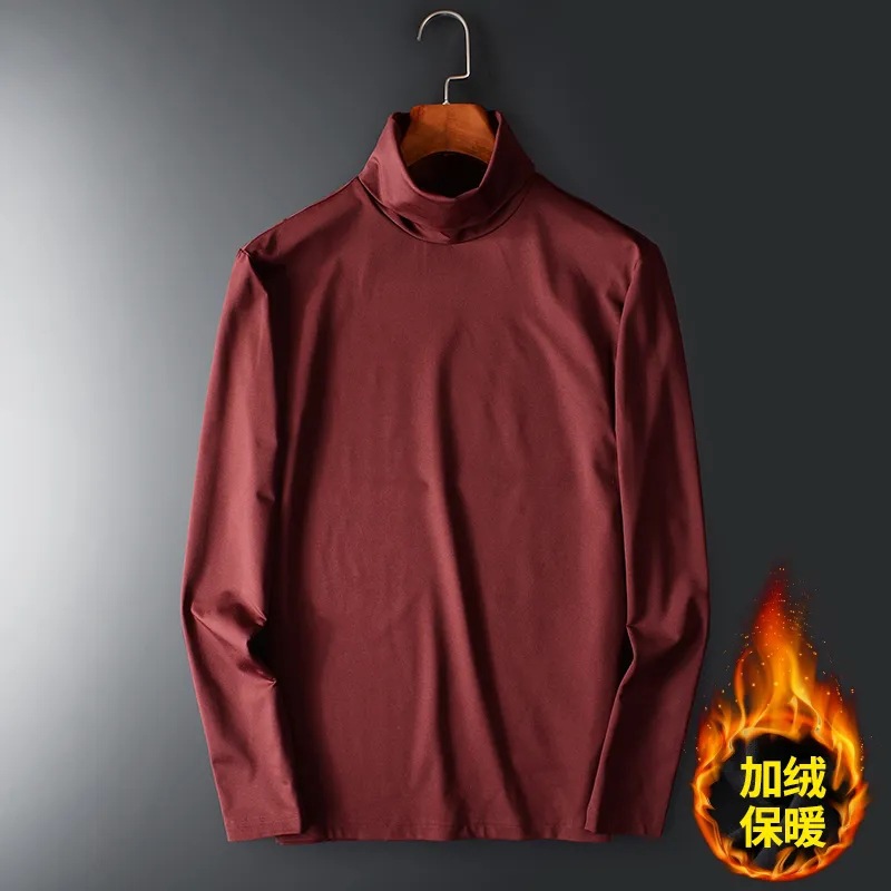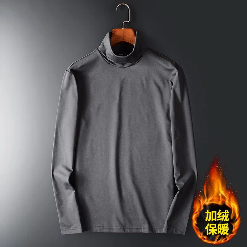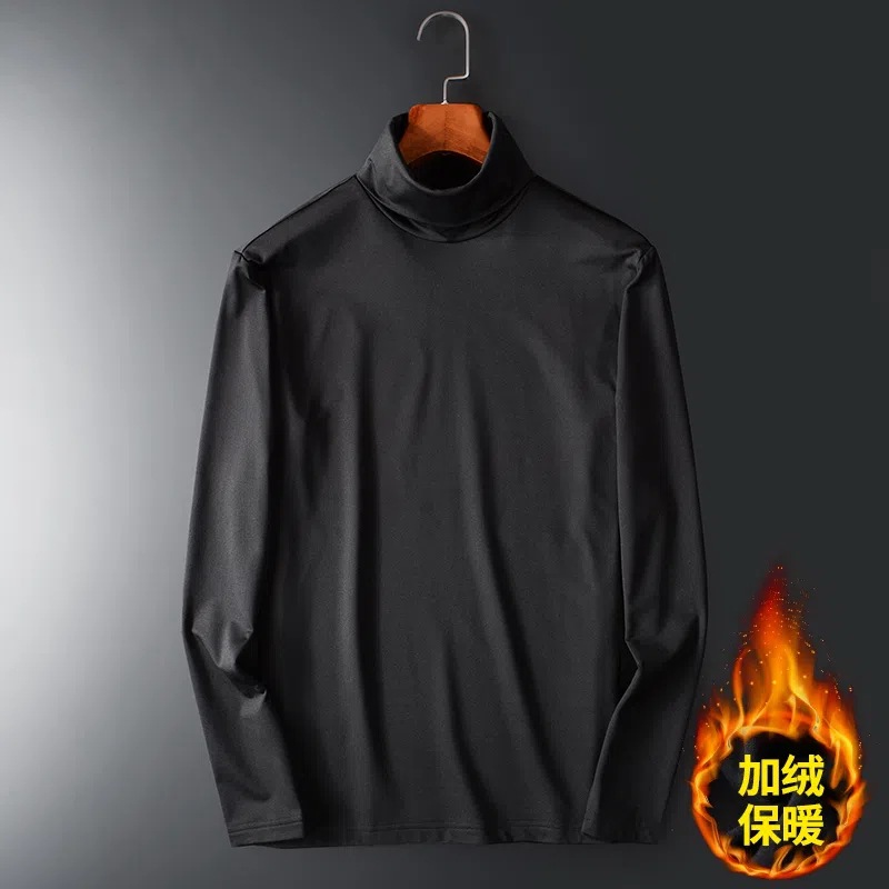 「실크라이트 얇은 벨벳」남성용 하프 터틀넥 베이스 레이어 긴팔 티셔츠 플러스 벨벳 보온 상의 양면 독일산 벨벳 티셔츠