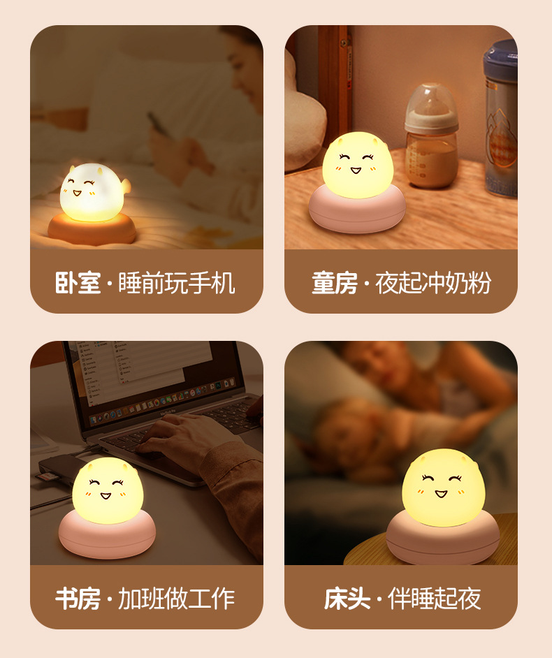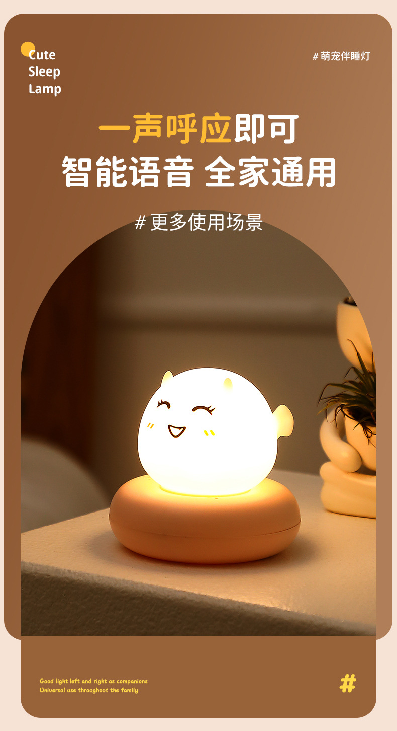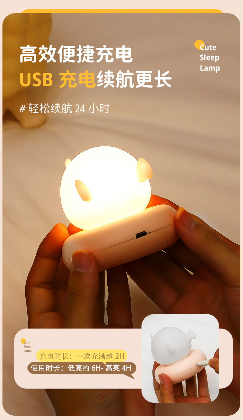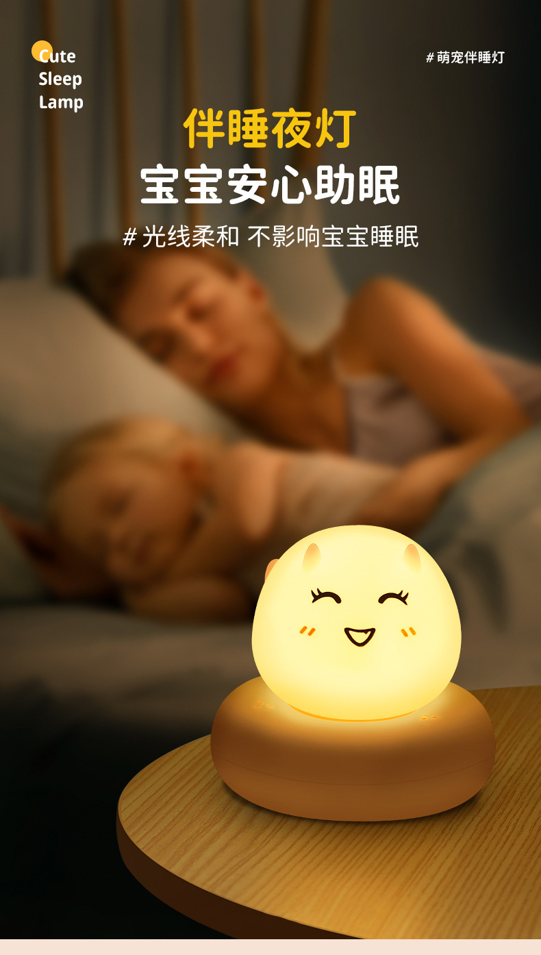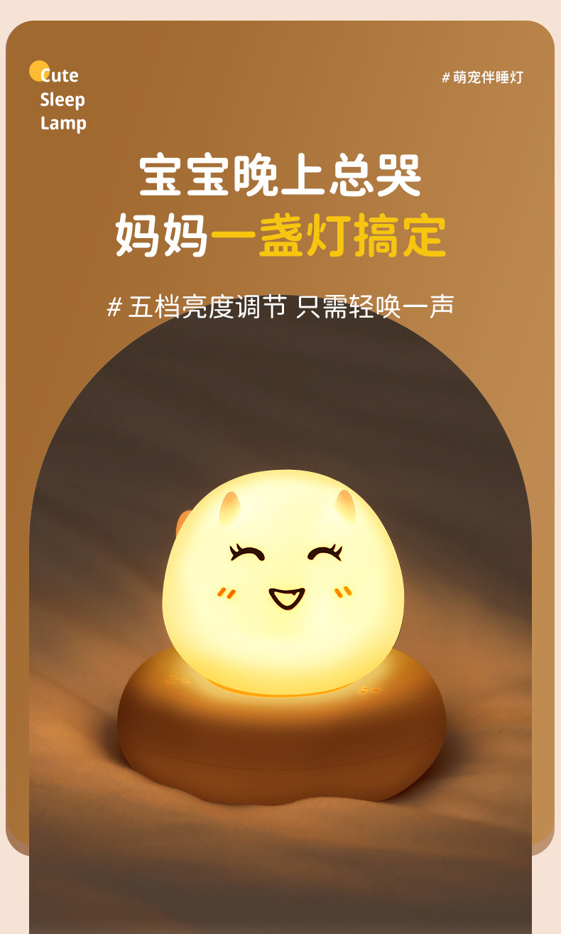 귀여운 애완 동물 수면 야간 조명 어린이 침실 USB 충전 팻 센서 라이트 LED 만화 침대 옆 램프 아기 수유