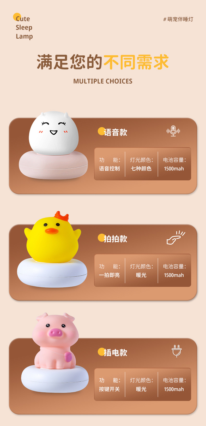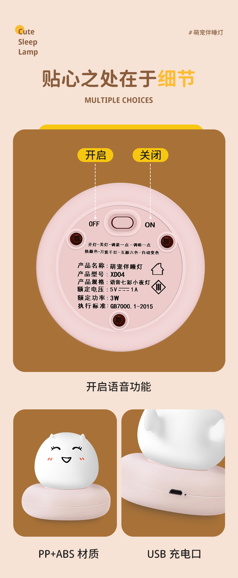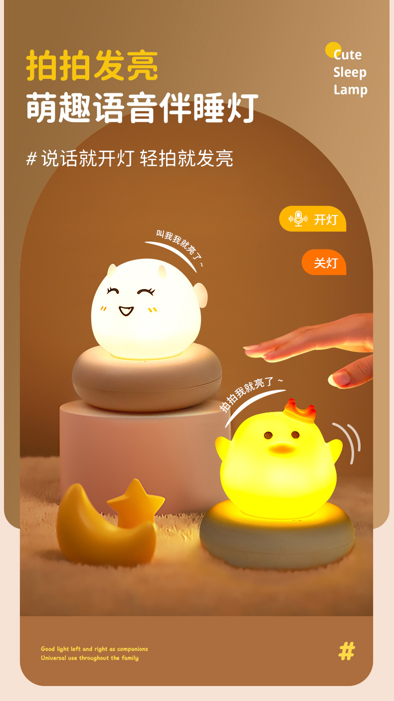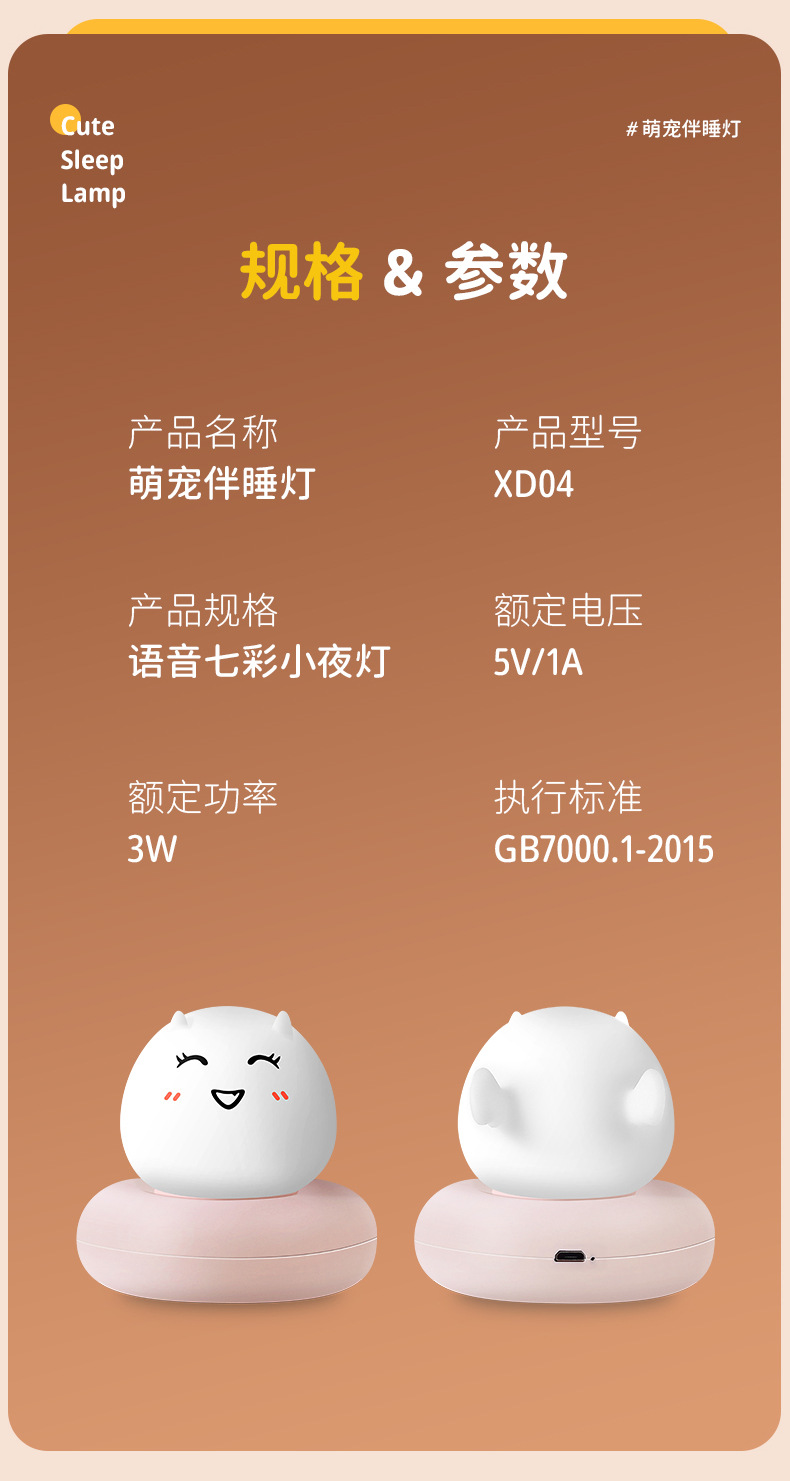 귀여운 애완 동물 수면 야간 조명 어린이 침실 USB 충전 팻 센서 라이트 LED 만화 침대 옆 램프 아기 수유