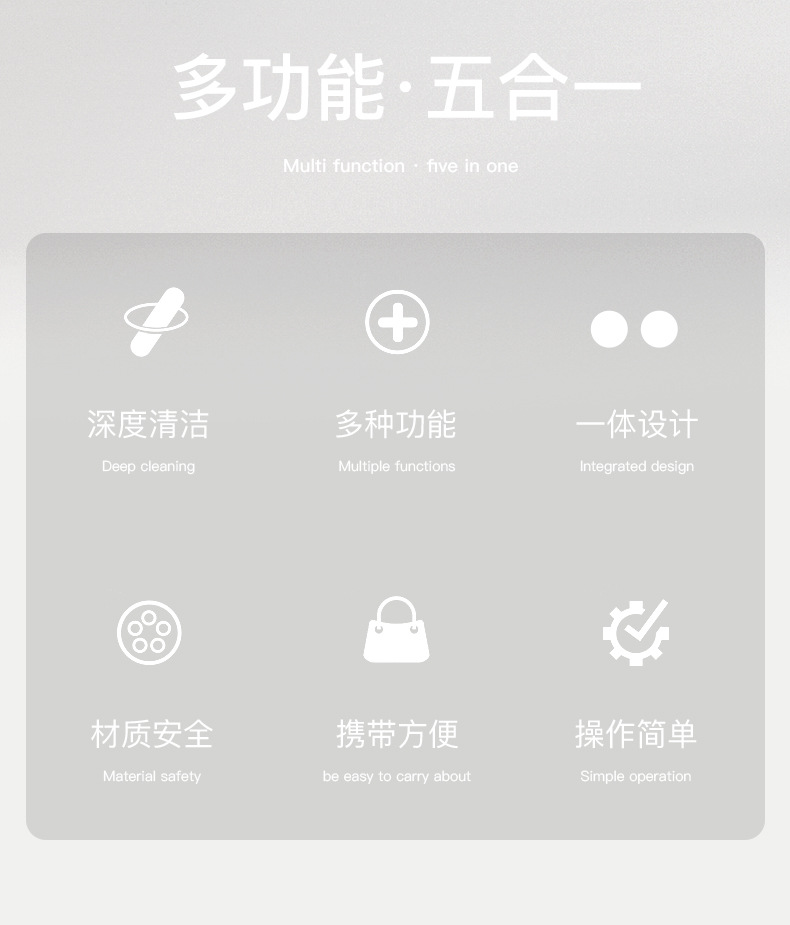 五合一多功能清洁神器,耳机,手机,平板,笔记本电脑,电视机等数码产品均可清理!