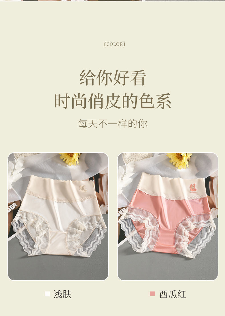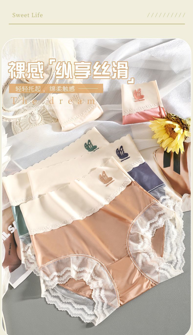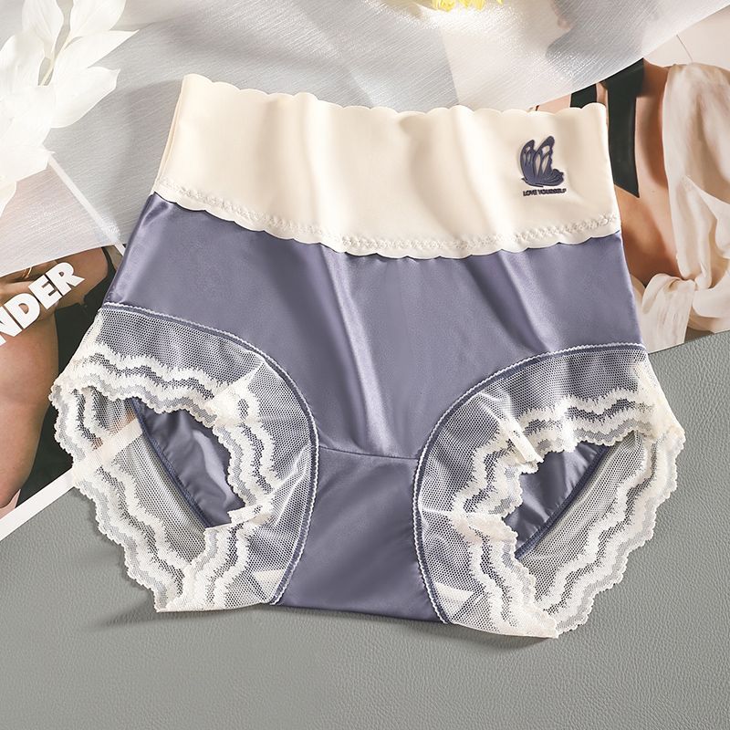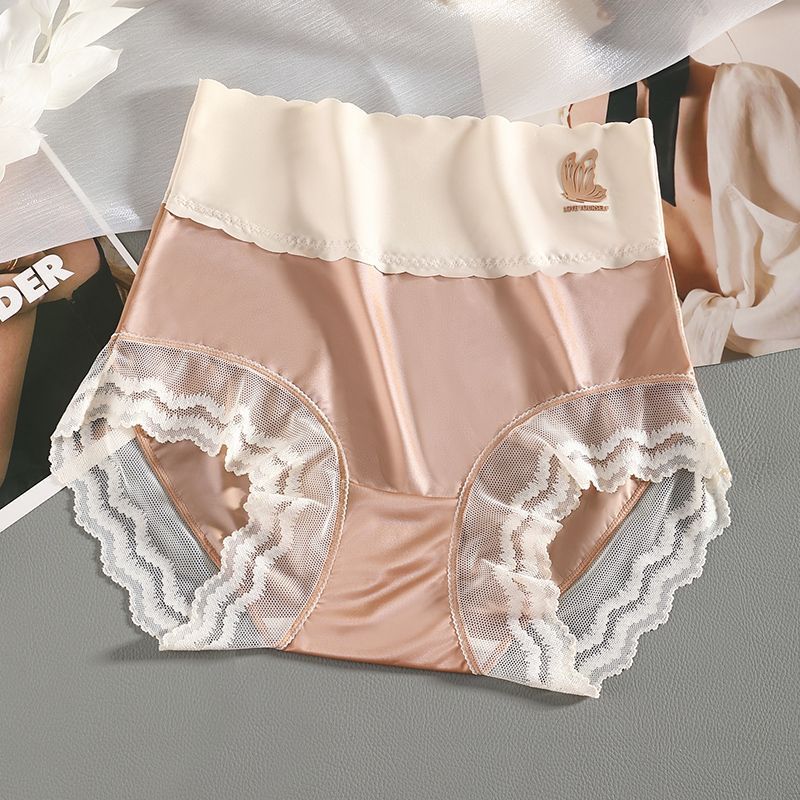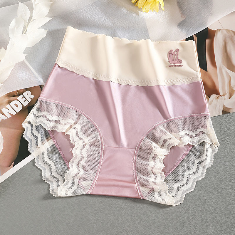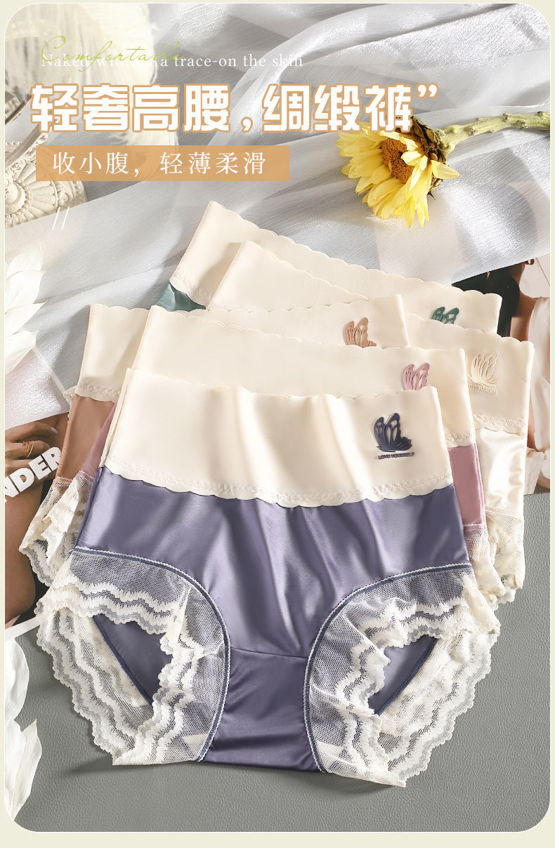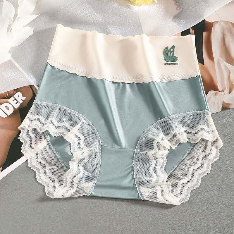 하이 웨이스트 여성의 속옷 원활한 항균 가랑이 배꼽 리프팅 엉덩이 여름 얇은 레이스 섹시한 아이스 실크 플러스 사이즈 통통녀 반바지