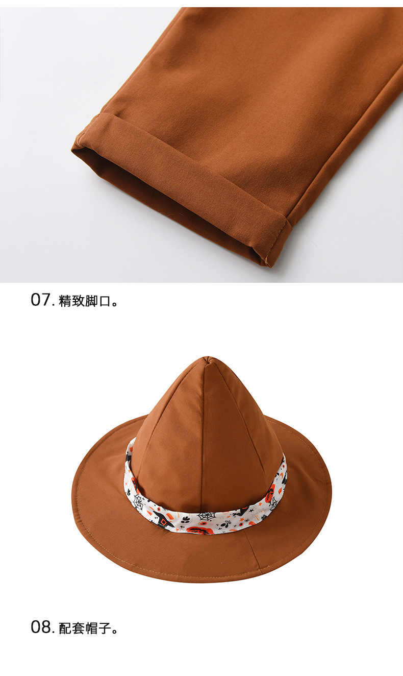 8码-90码-100码-110码-120码-130码  外贸童装批发万圣节南瓜表演服儿童衣服宝宝巫师帽三件套男童套装