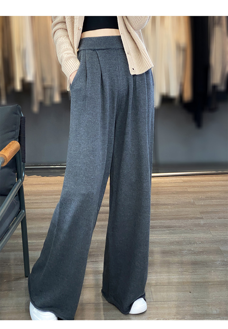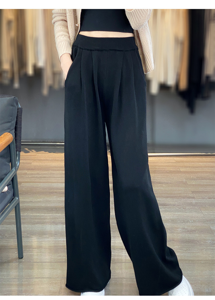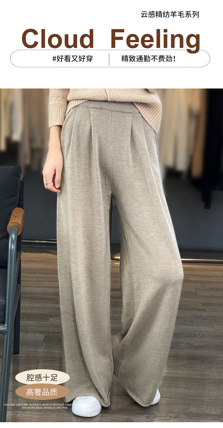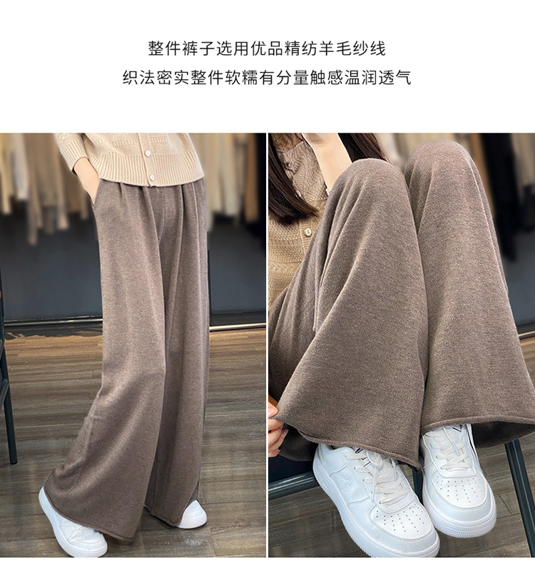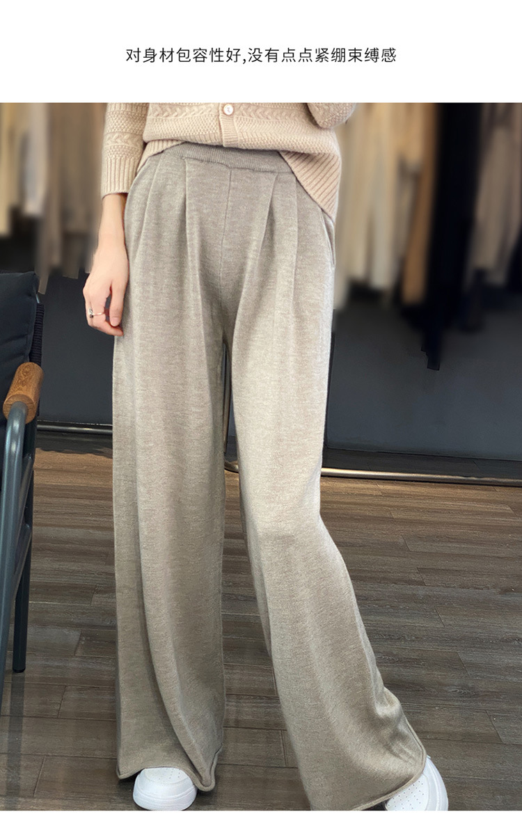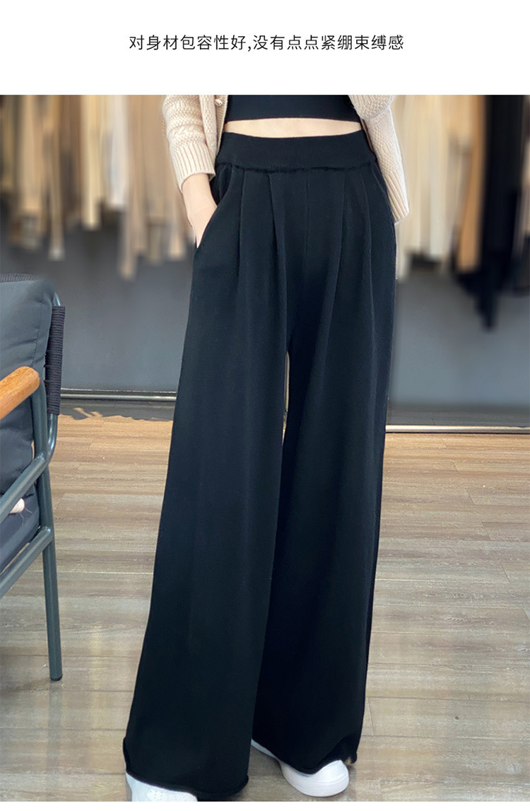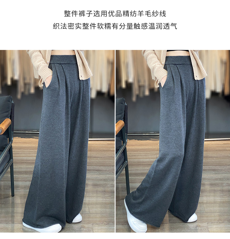 고급 워스티드 울 니트 와이드 팬츠 여성용 하이 웨이스트 데이프 얇은 패션 바지 캐주얼 바지스토어 가기